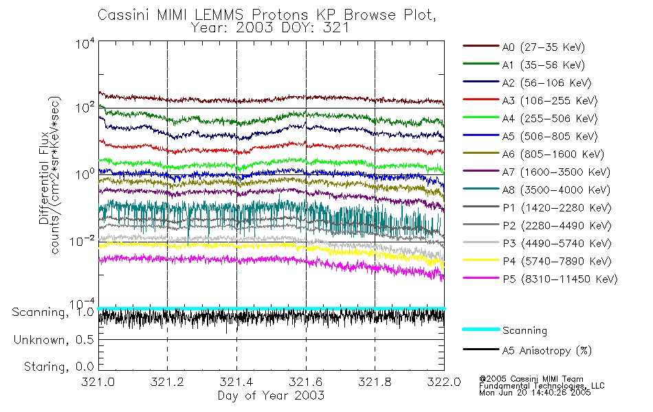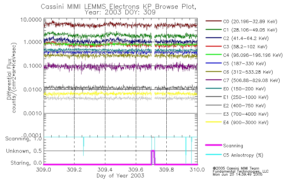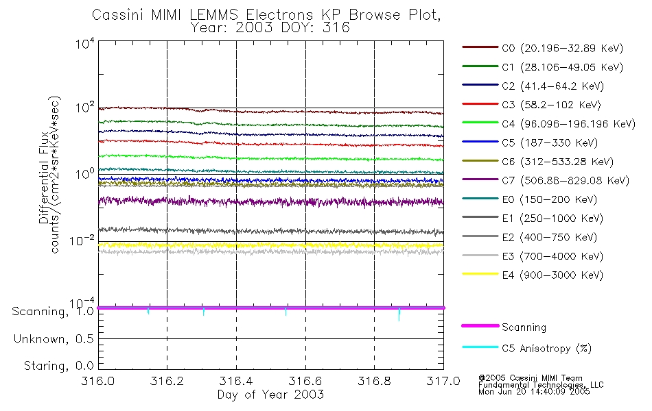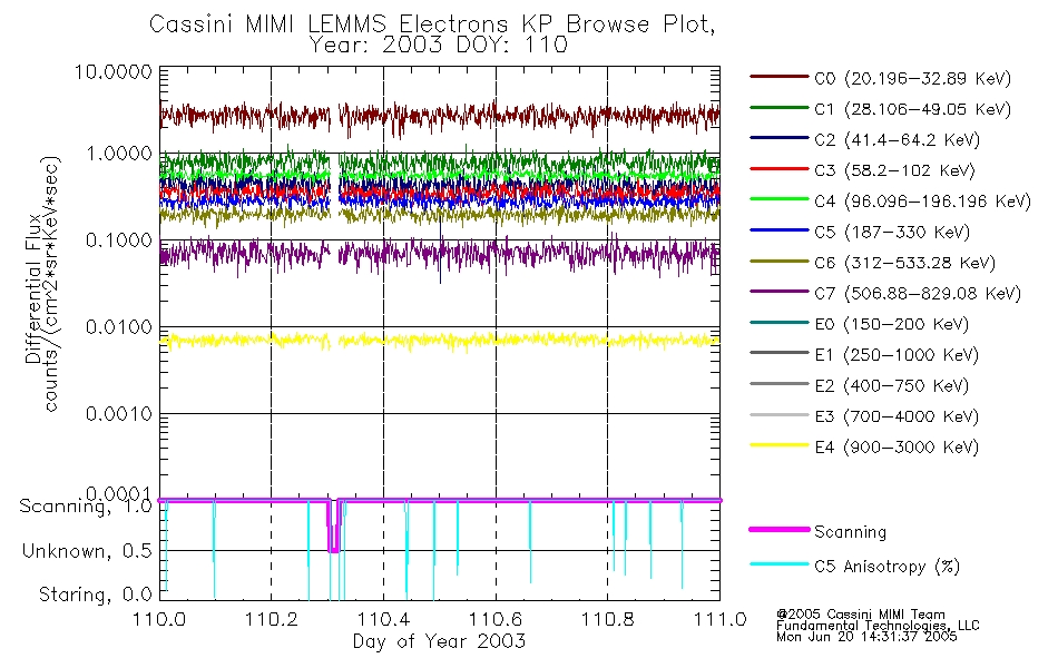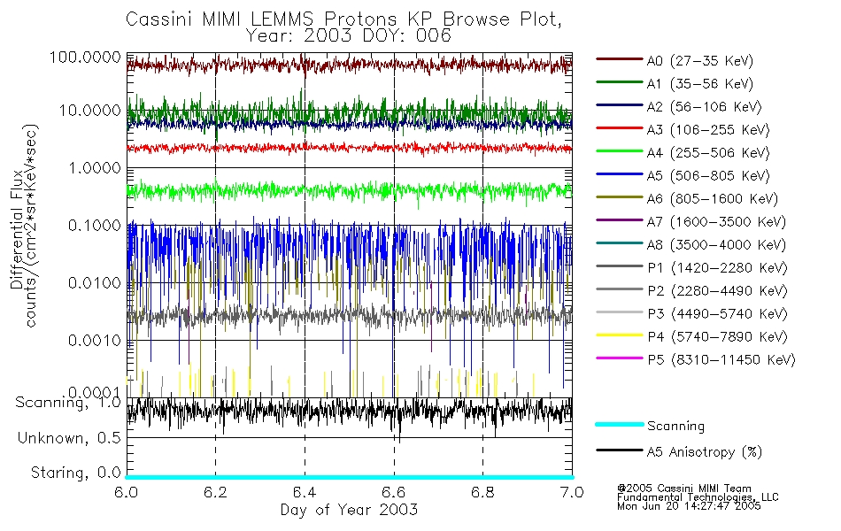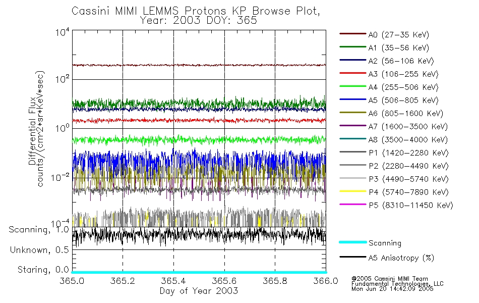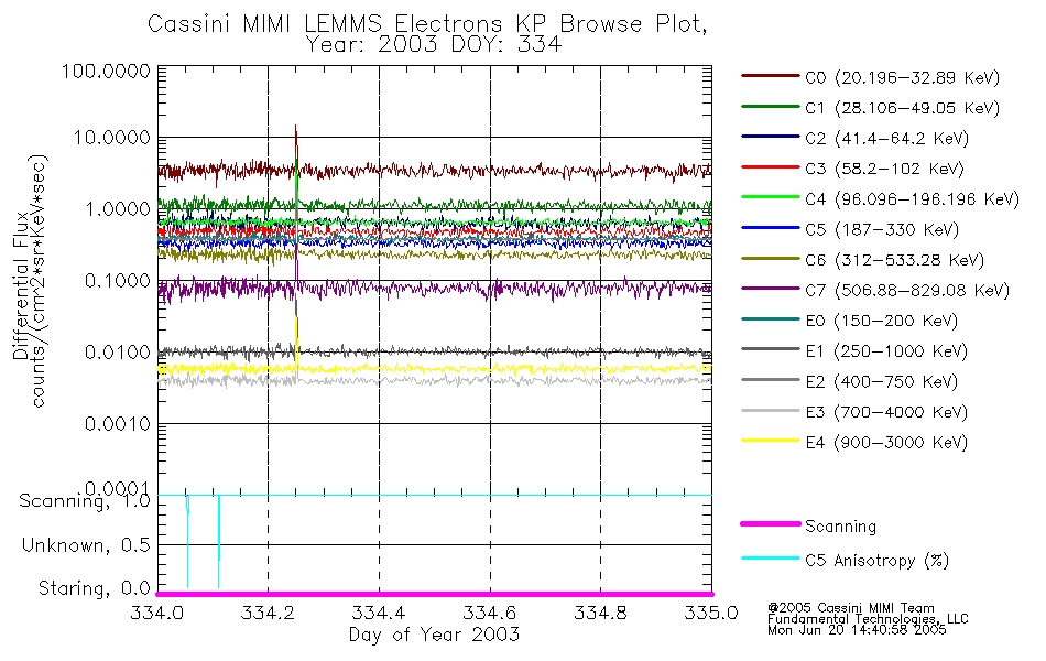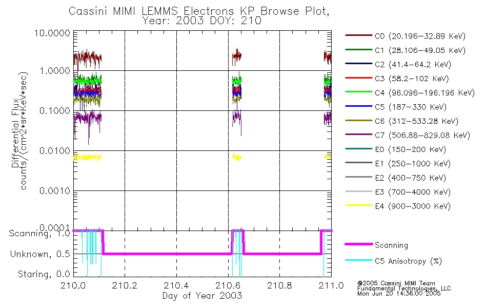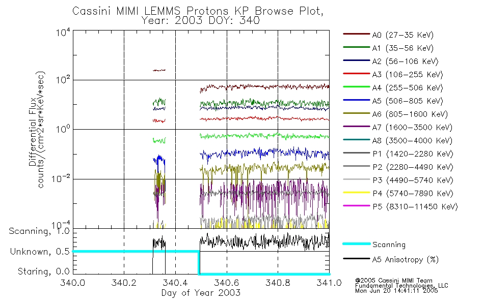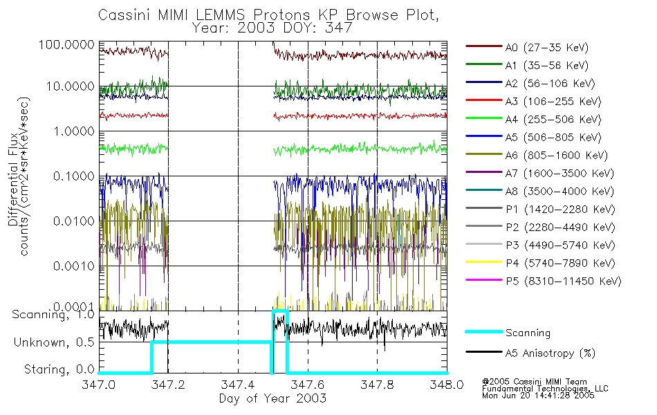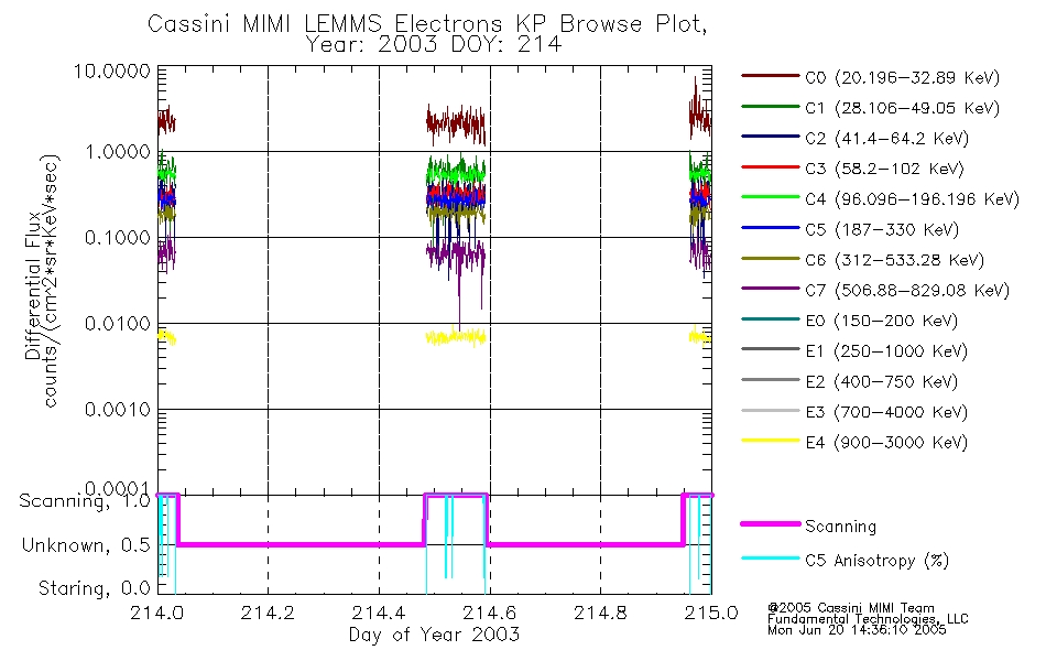 A browse data set is included with Key Parameter data that is calibrated using the algorithms provided in the Calibration volume. In addition, a series of images are provided with the KP browse data that displays the KP data which can lead the user to the particular times of interest. This data set should be among the first used by a user of any of the MIMI LEMMS archive as it will lead one to information required to search for more detailed or highly specialized features in the original data. The Key Parameters data set is not intented for direct use, only as a guide to finding points of interest.