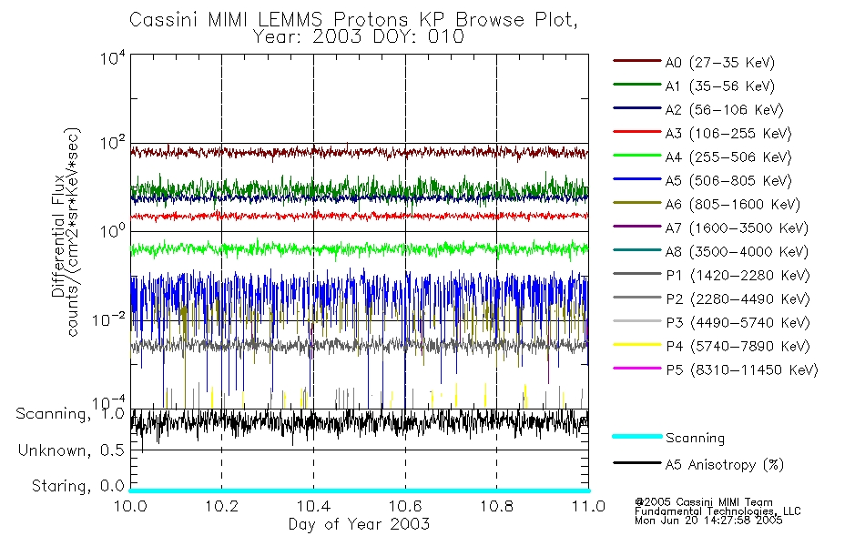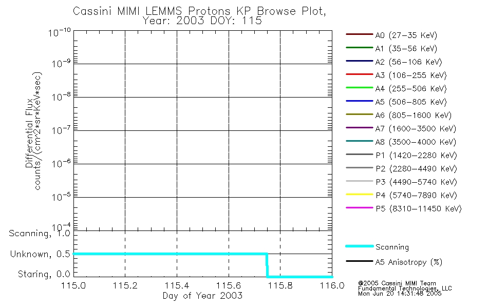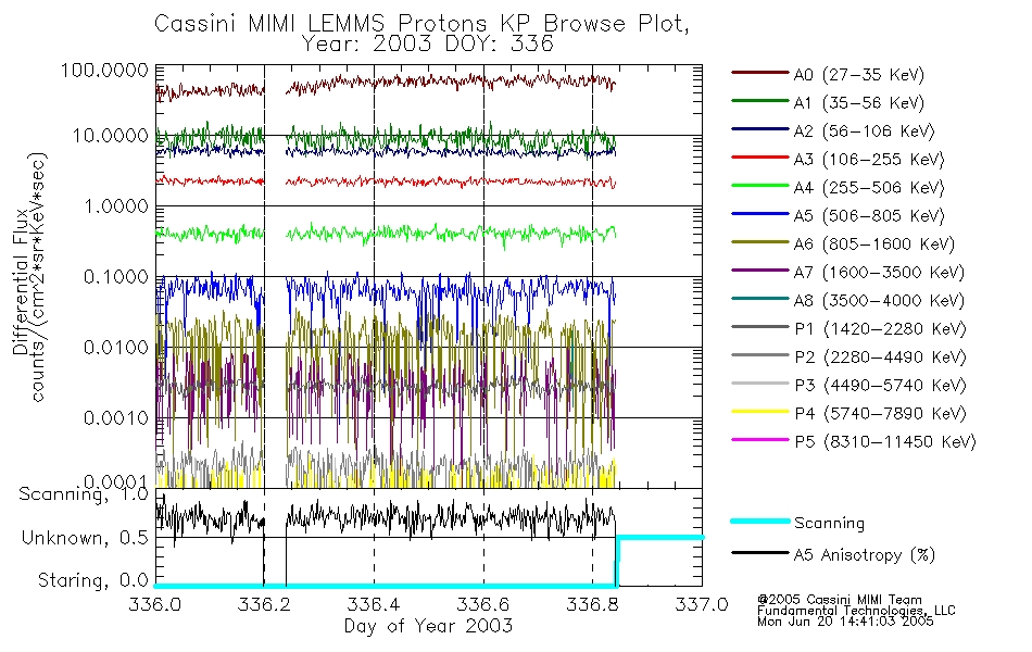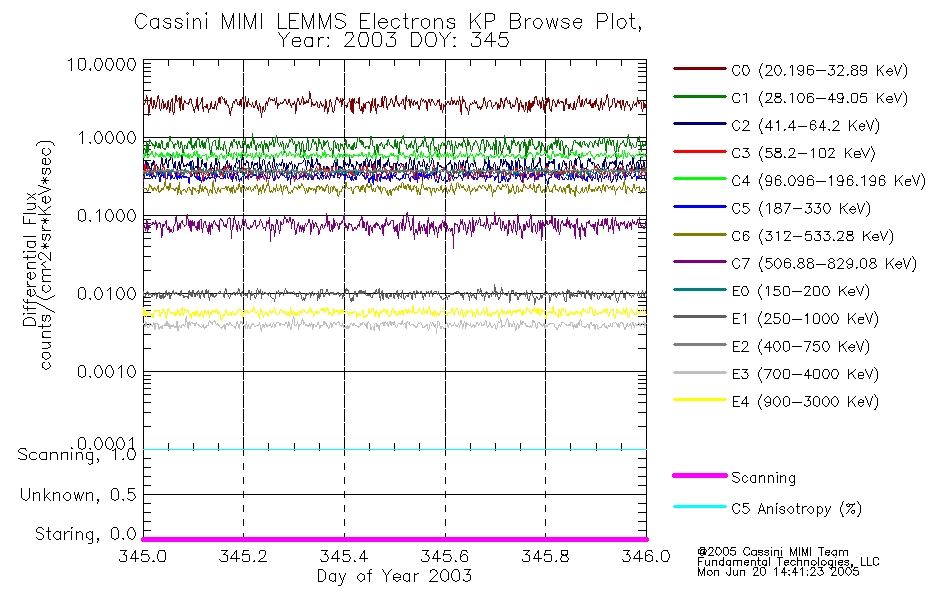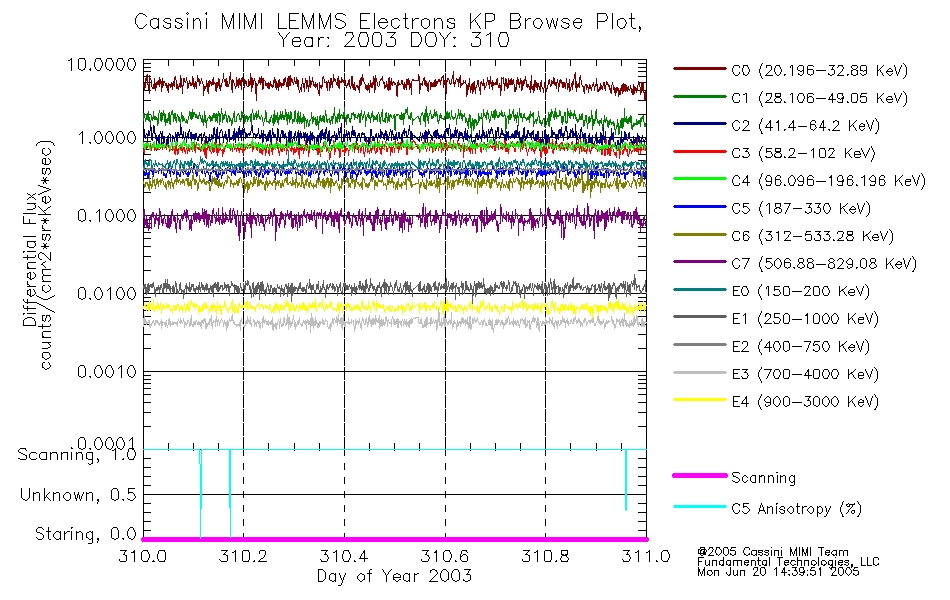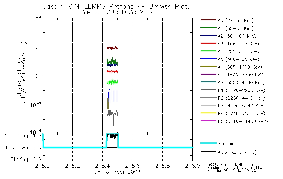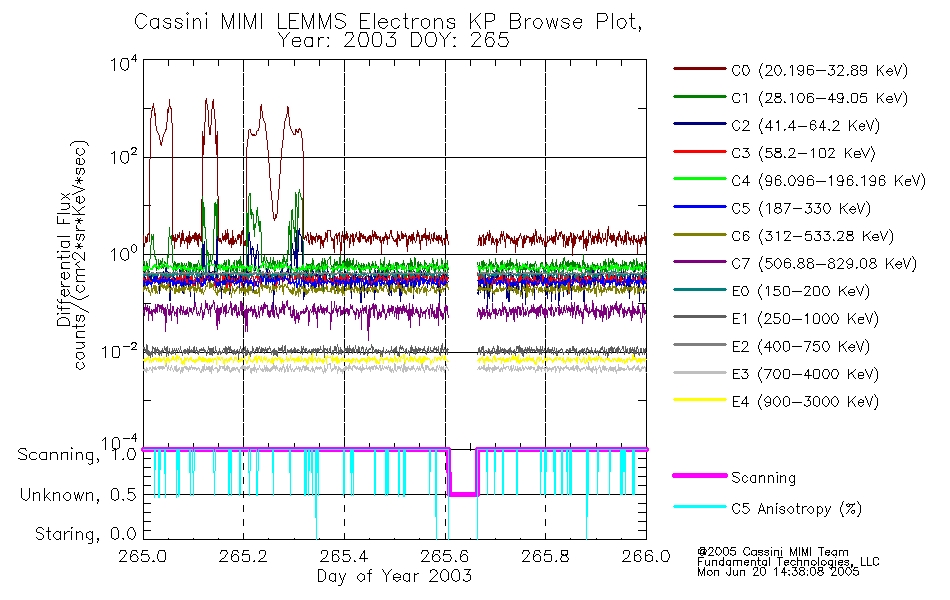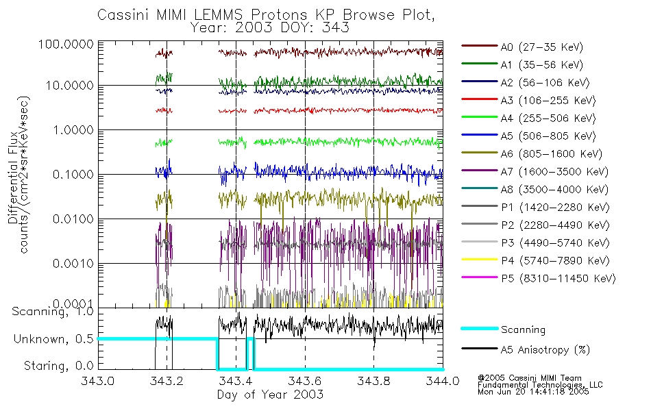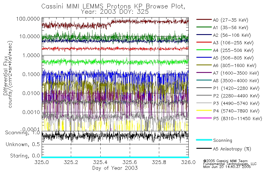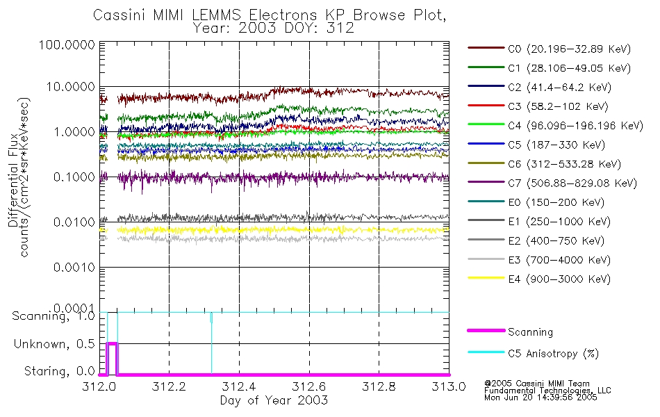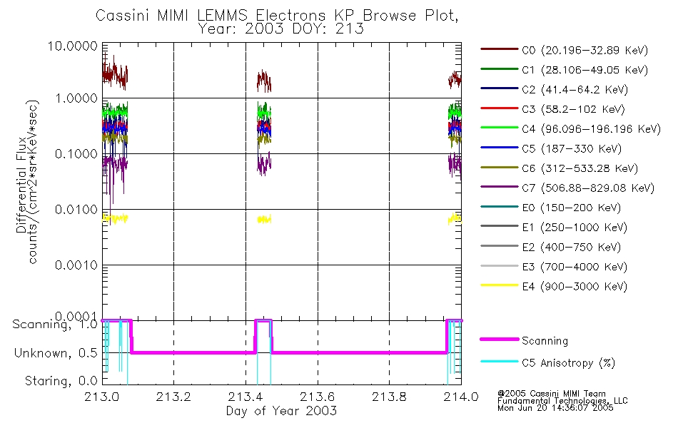 A browse data set is included with Key Parameter data that is calibrated using the algorithms provided in the Calibration volume. In addition, a series of images are provided with the KP browse data that displays the KP data which can lead the user to the particular times of interest. This data set should be among the first used by a user of any of the MIMI LEMMS archive as it will lead one to information required to search for more detailed or highly specialized features in the original data. The Key Parameters data set is not intented for direct use, only as a guide to finding points of interest.