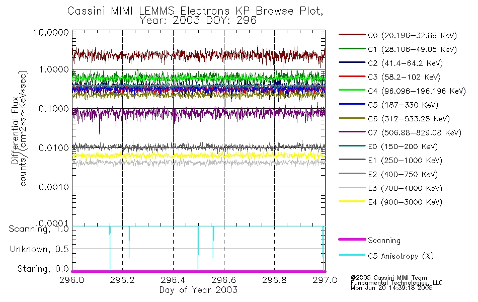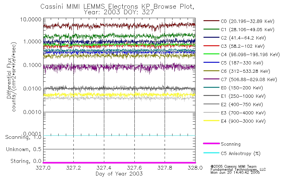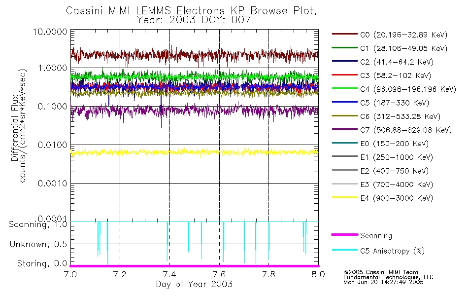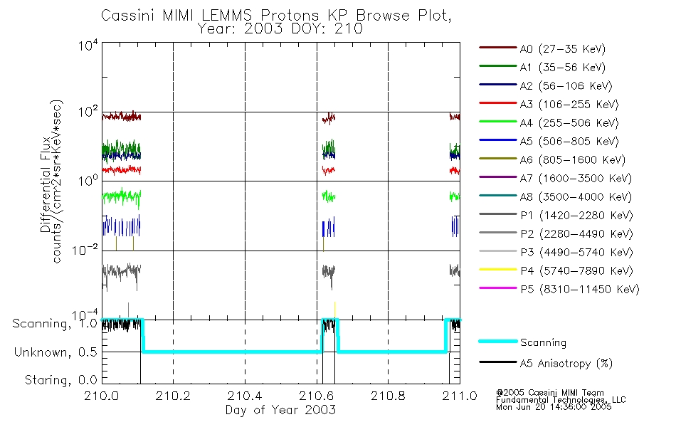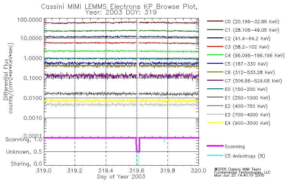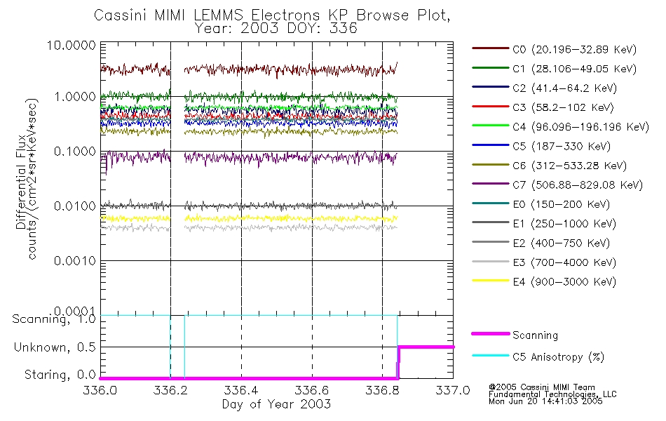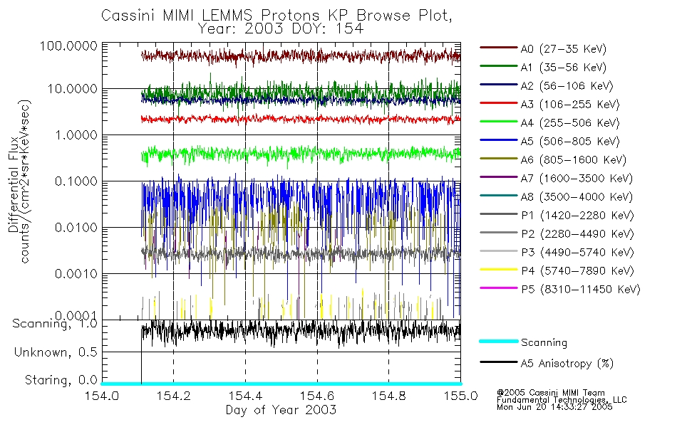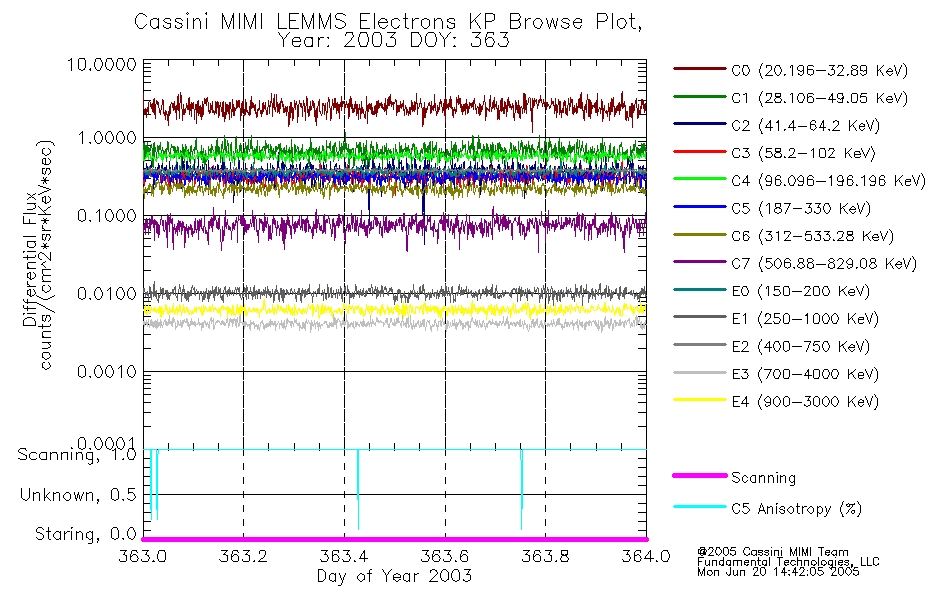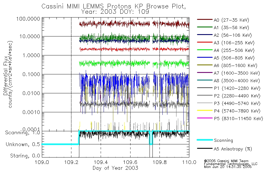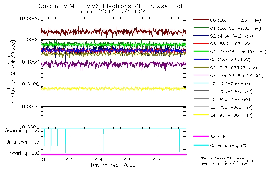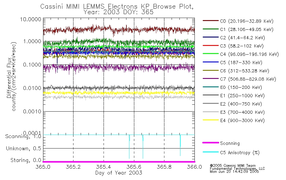 A browse data set is included with Key Parameter data that is calibrated using the algorithms provided in the Calibration volume. In addition, a series of images are provided with the KP browse data that displays the KP data which can lead the user to the particular times of interest. This data set should be among the first used by a user of any of the MIMI LEMMS archive as it will lead one to information required to search for more detailed or highly specialized features in the original data. The Key Parameters data set is not intented for direct use, only as a guide to finding points of interest.