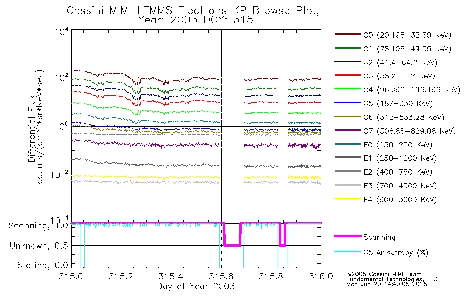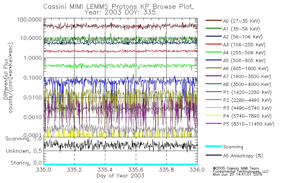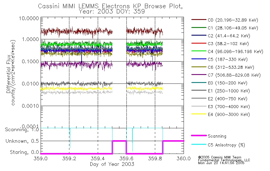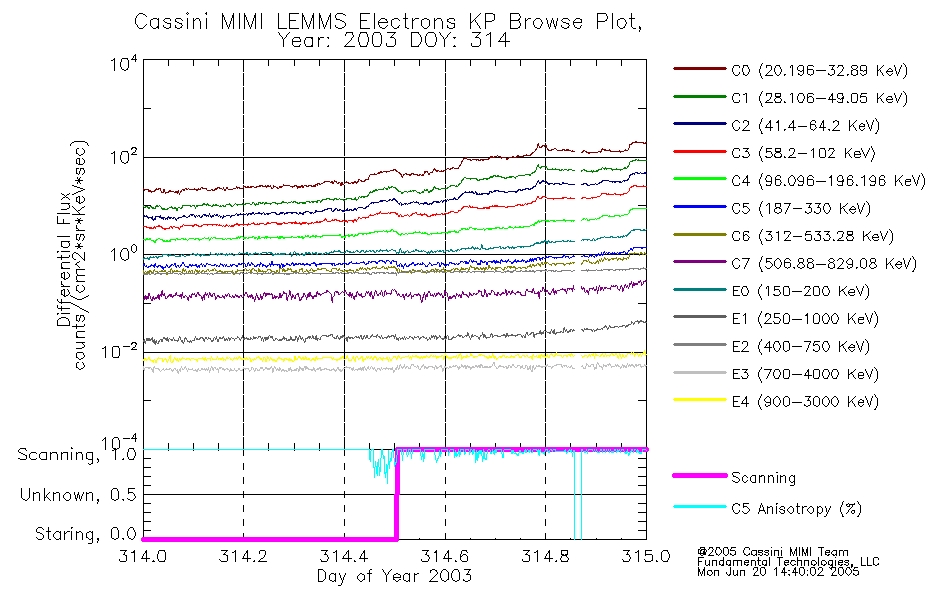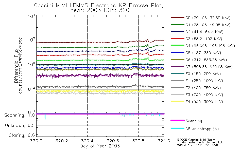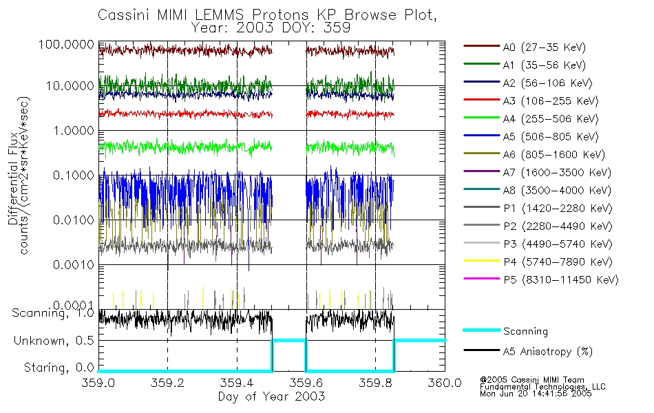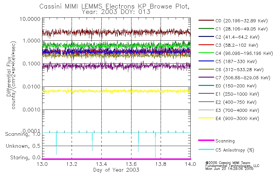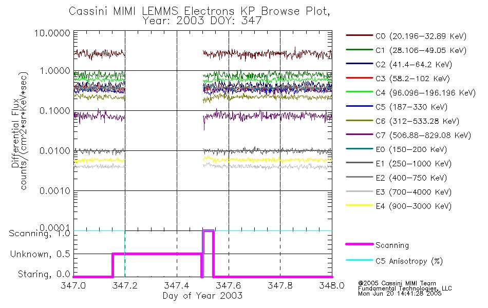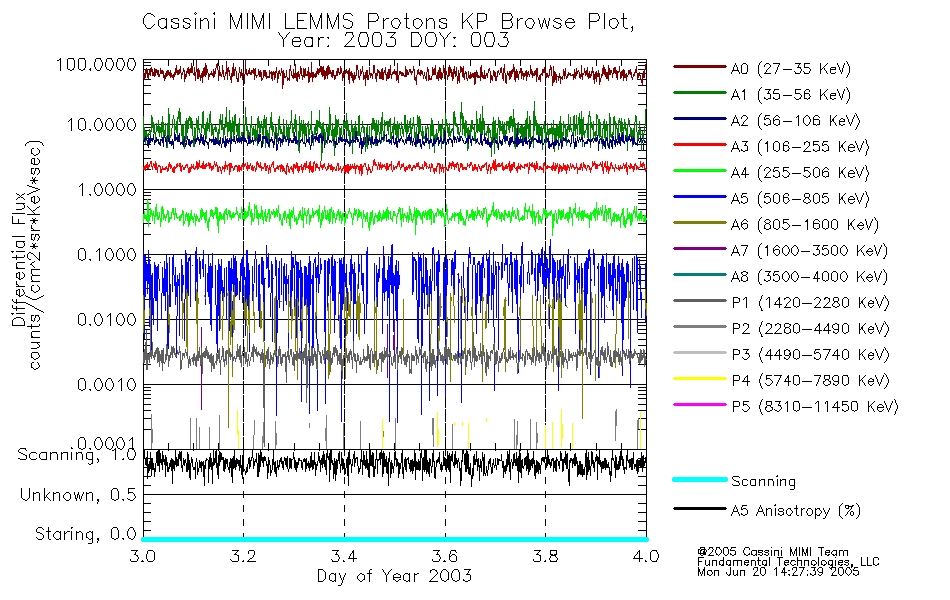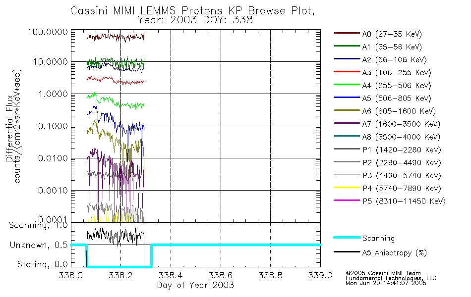 A browse data set is included with Key Parameter data that is calibrated using the algorithms provided in the Calibration volume. In addition, a series of images are provided with the KP browse data that displays the KP data which can lead the user to the particular times of interest. This data set should be among the first used by a user of any of the MIMI LEMMS archive as it will lead one to information required to search for more detailed or highly specialized features in the original data. The Key Parameters data set is not intented for direct use, only as a guide to finding points of interest.