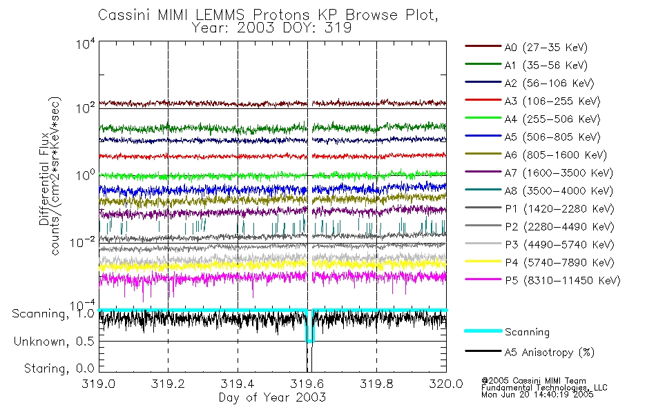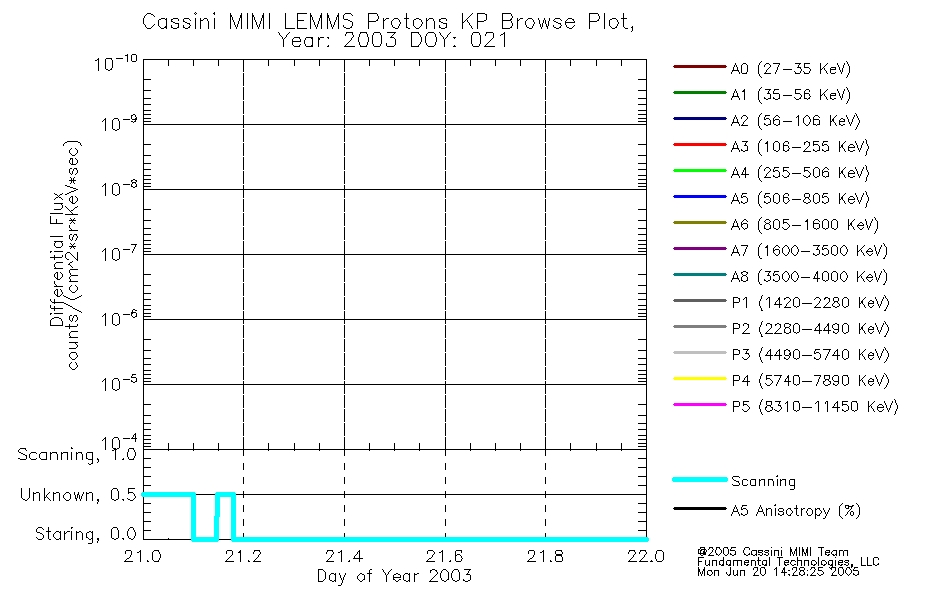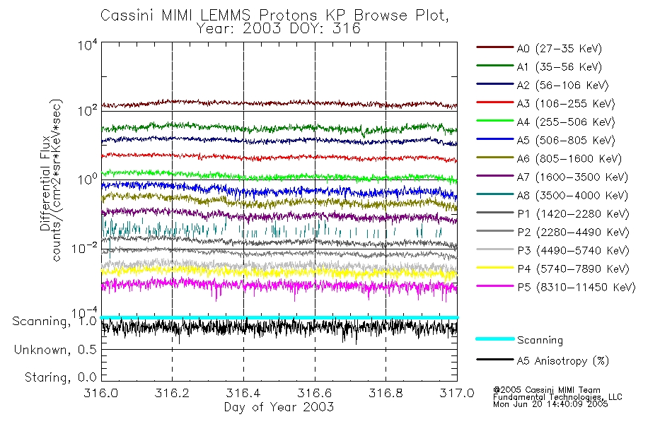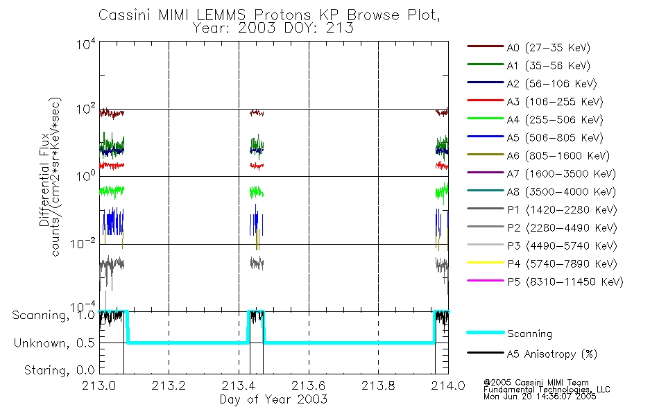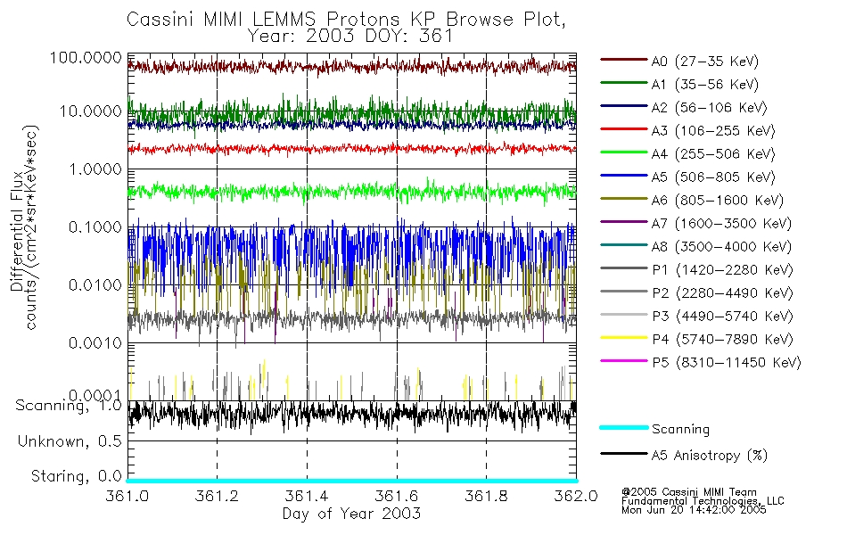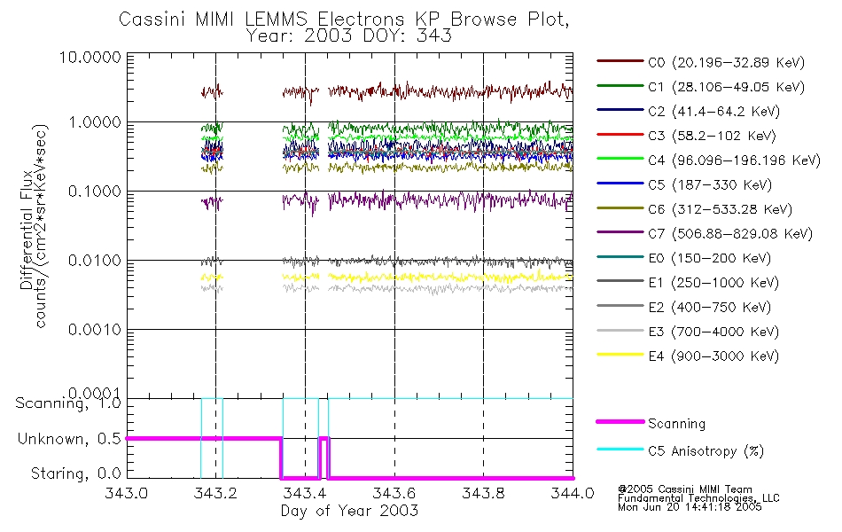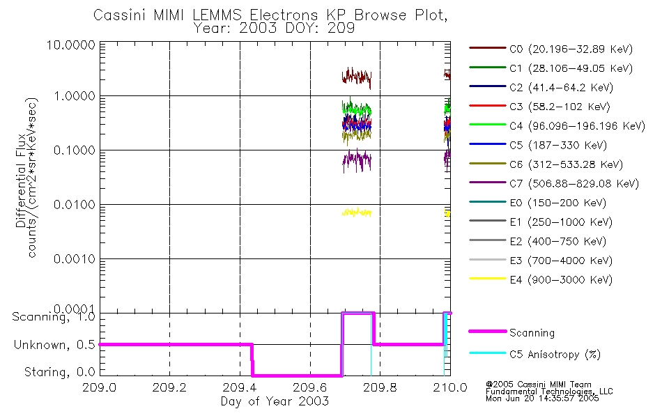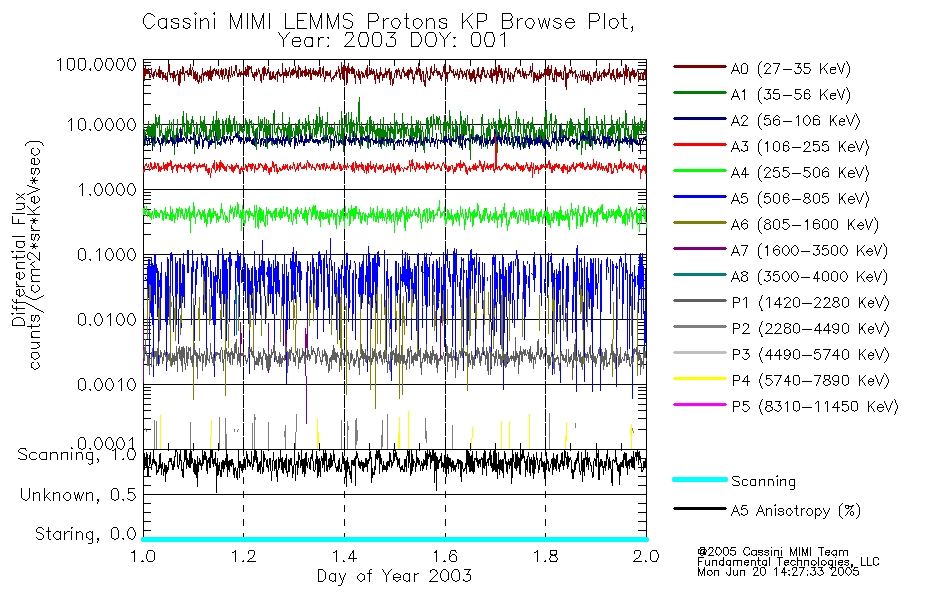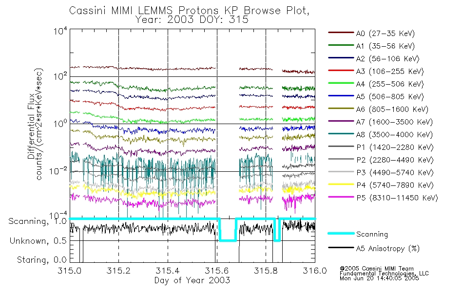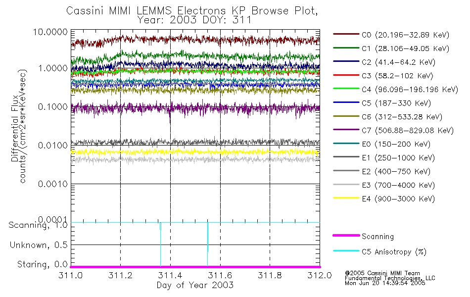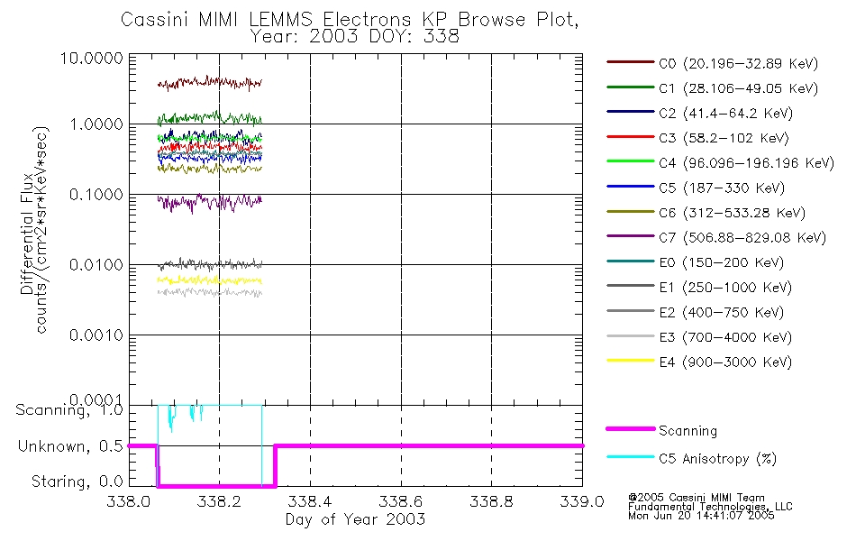 A browse data set is included with Key Parameter data that is calibrated using the algorithms provided in the Calibration volume. In addition, a series of images are provided with the KP browse data that displays the KP data which can lead the user to the particular times of interest. This data set should be among the first used by a user of any of the MIMI LEMMS archive as it will lead one to information required to search for more detailed or highly specialized features in the original data. The Key Parameters data set is not intented for direct use, only as a guide to finding points of interest.