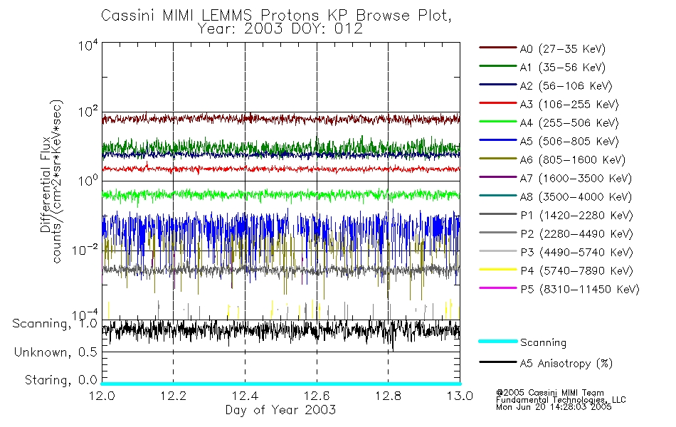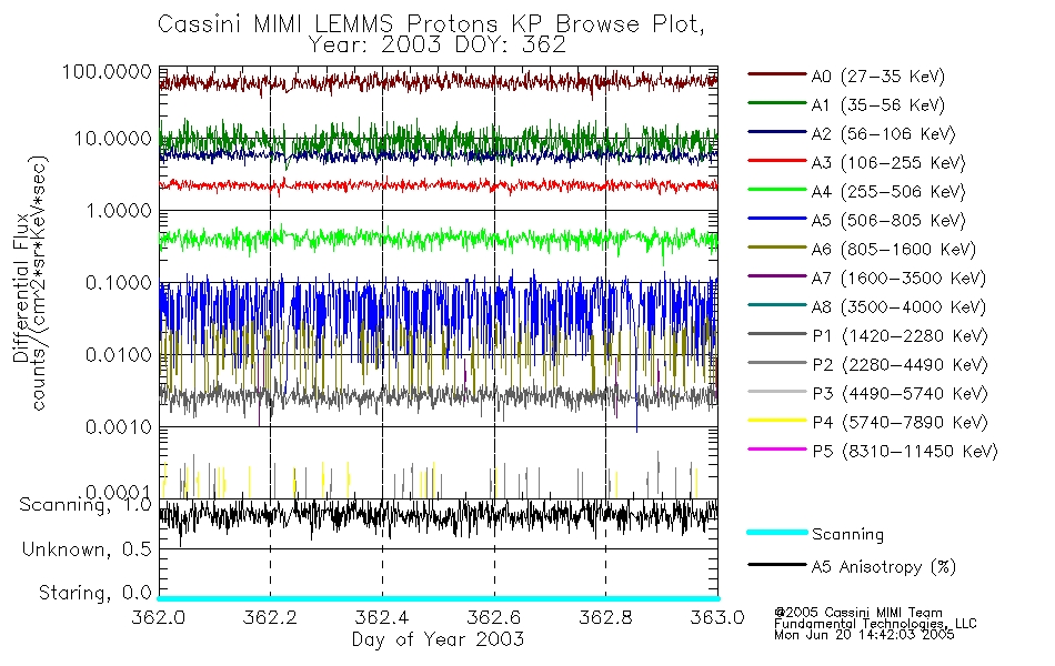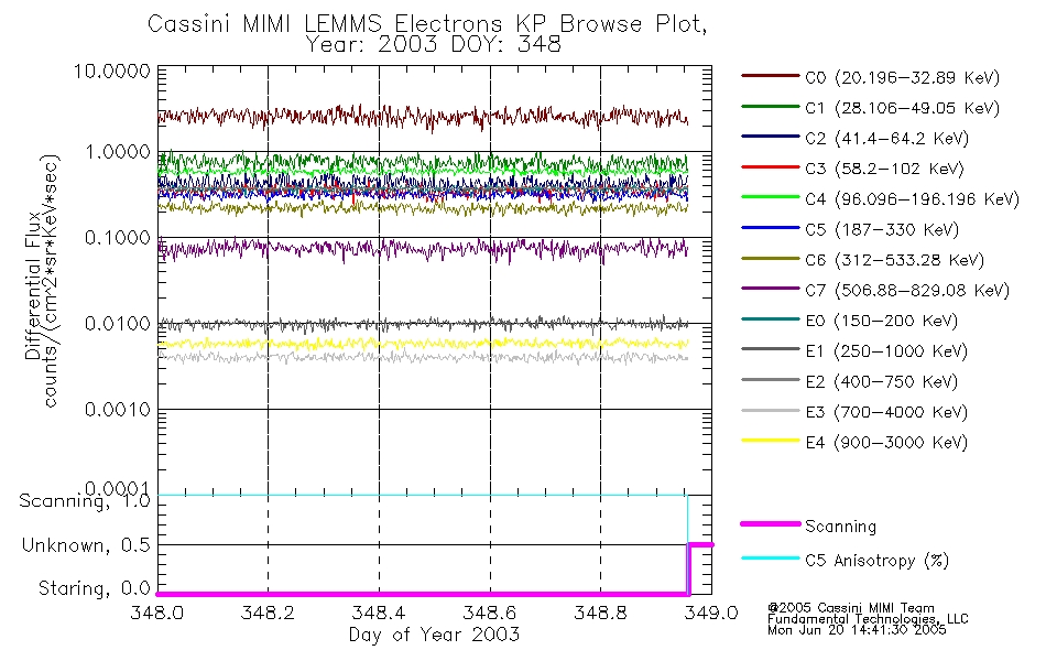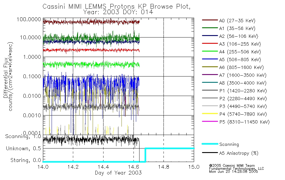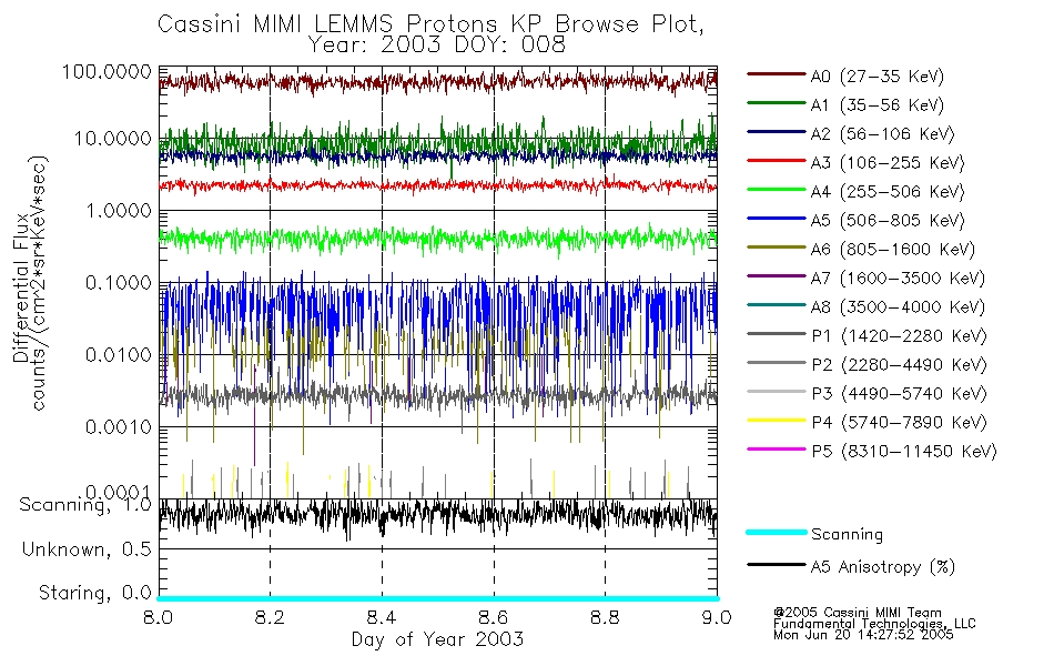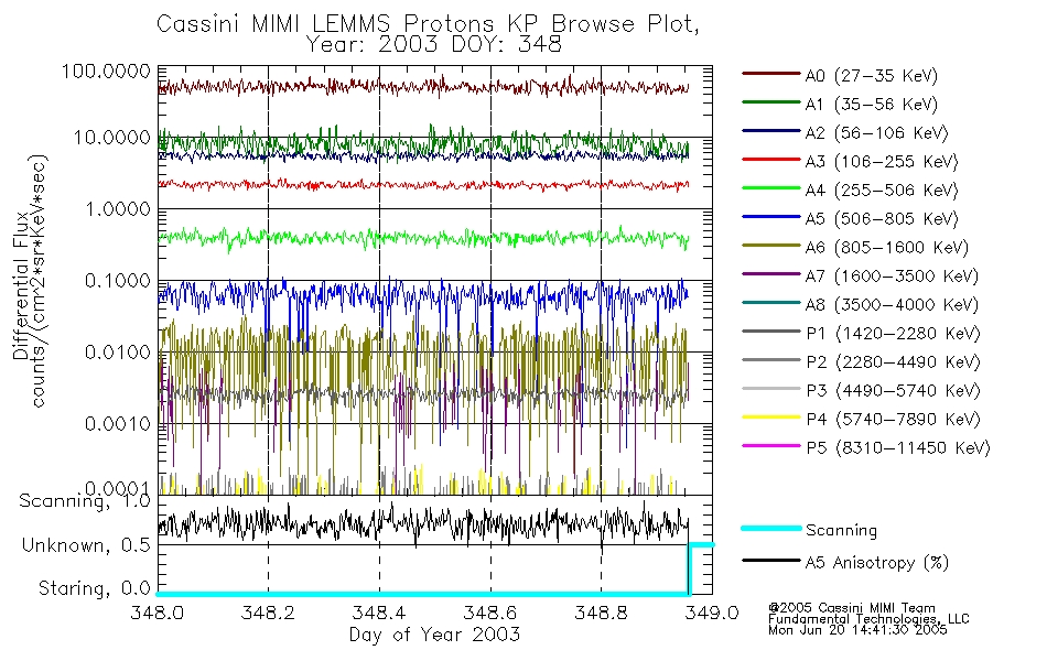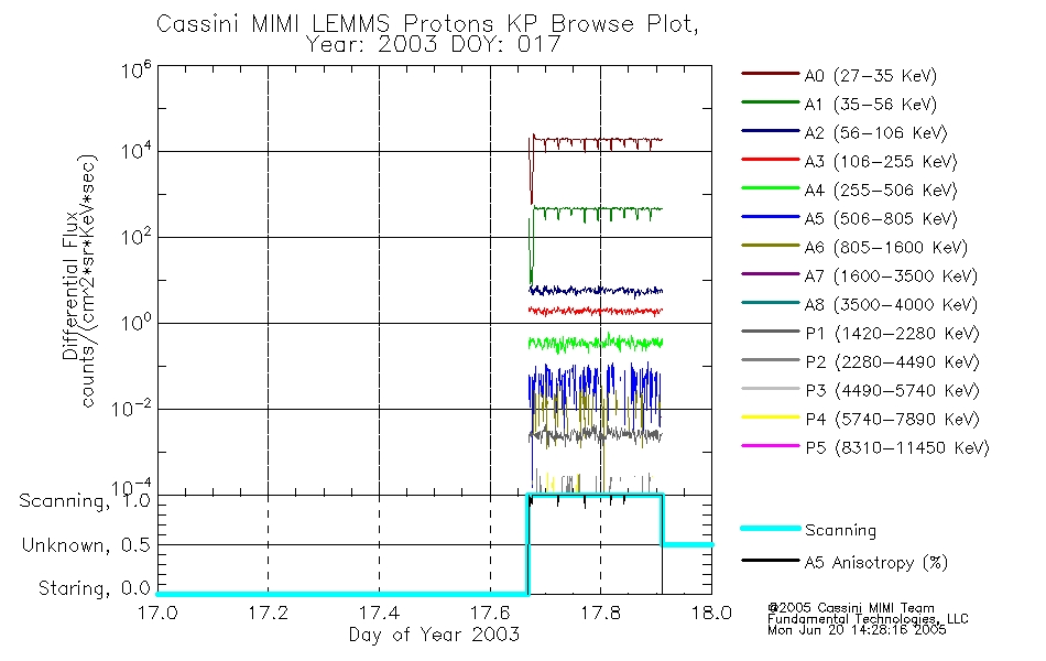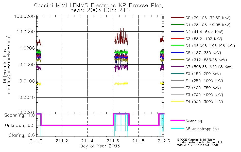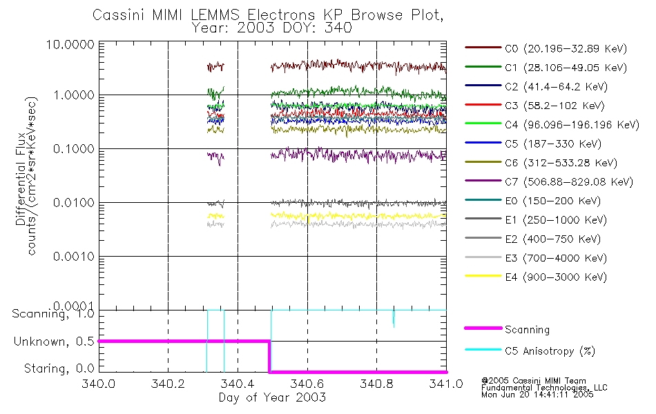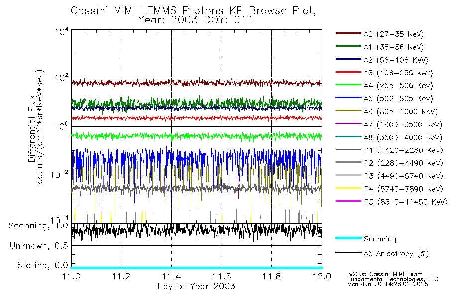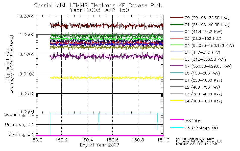 A browse data set is included with Key Parameter data that is calibrated using the algorithms provided in the Calibration volume. In addition, a series of images are provided with the KP browse data that displays the KP data which can lead the user to the particular times of interest. This data set should be among the first used by a user of any of the MIMI LEMMS archive as it will lead one to information required to search for more detailed or highly specialized features in the original data. The Key Parameters data set is not intented for direct use, only as a guide to finding points of interest.