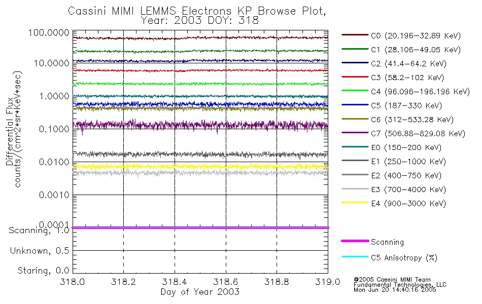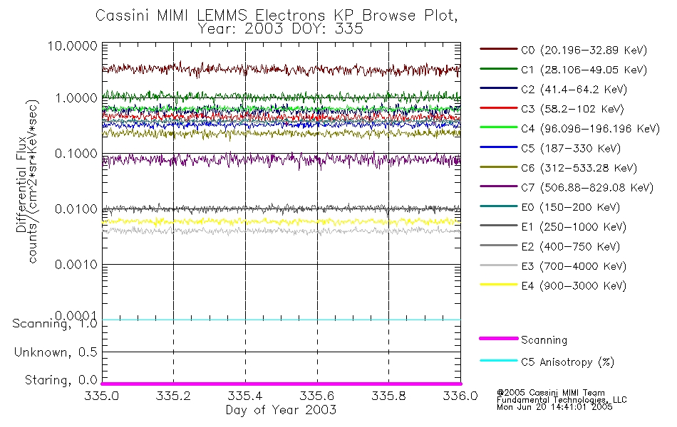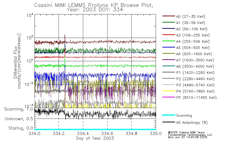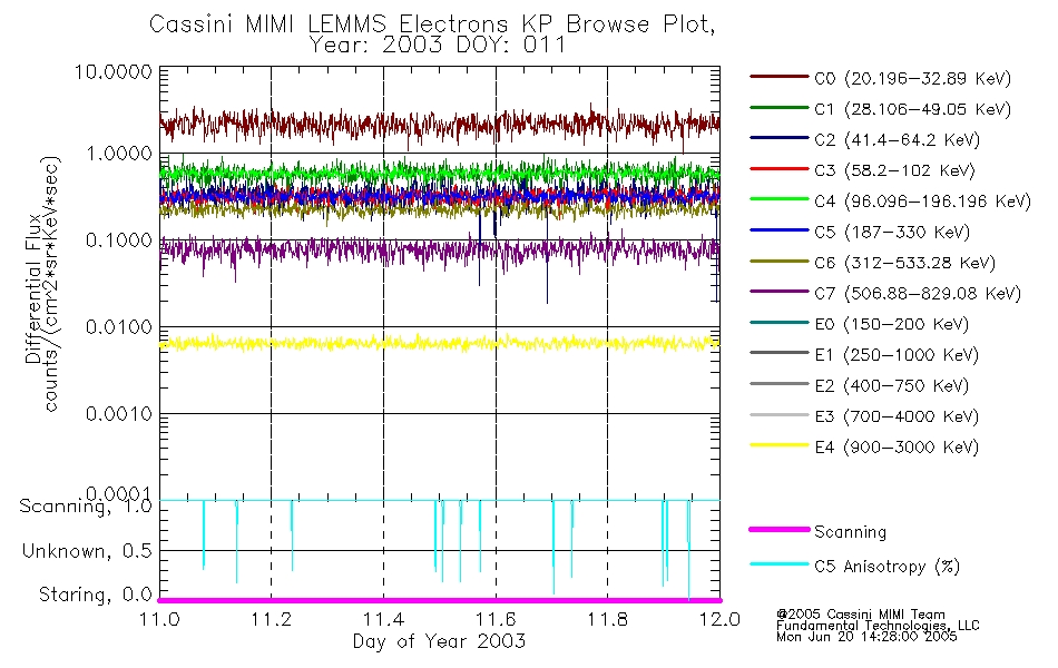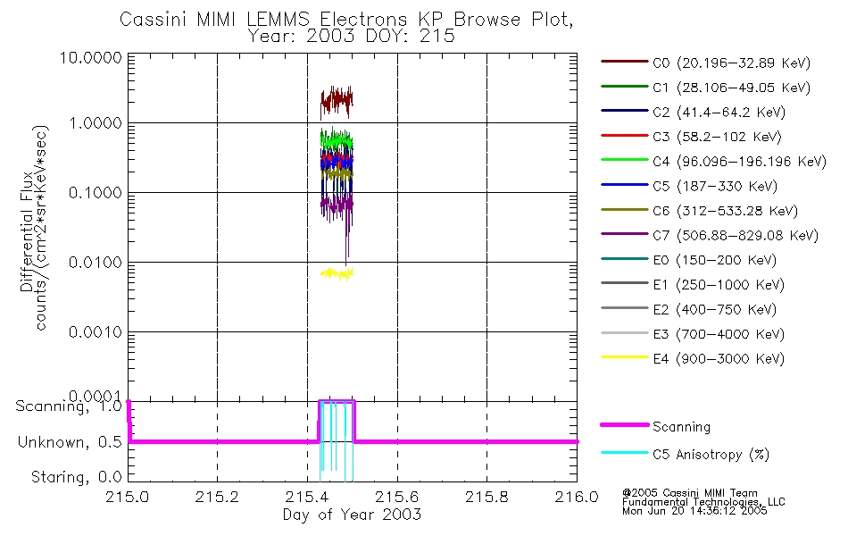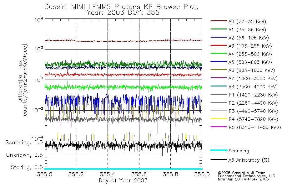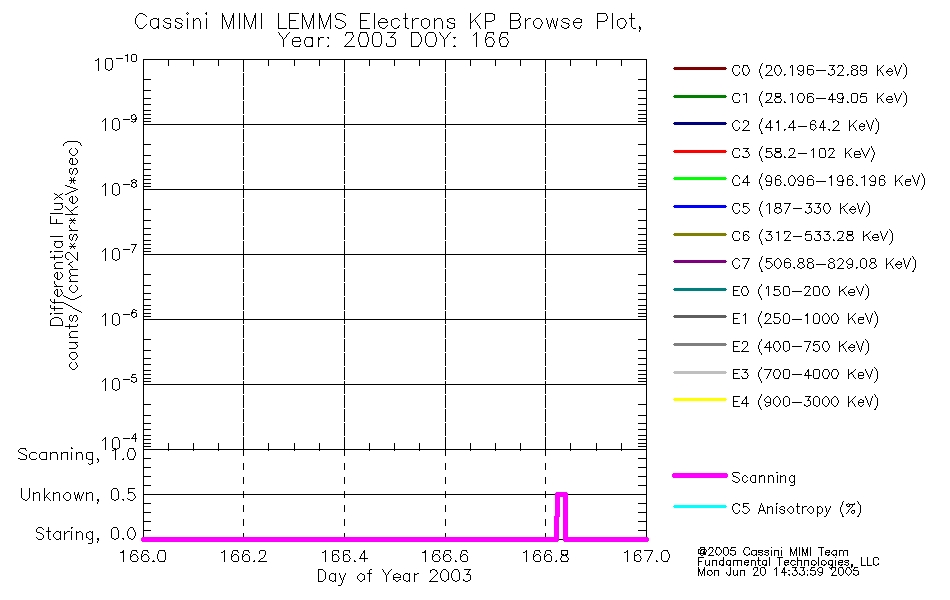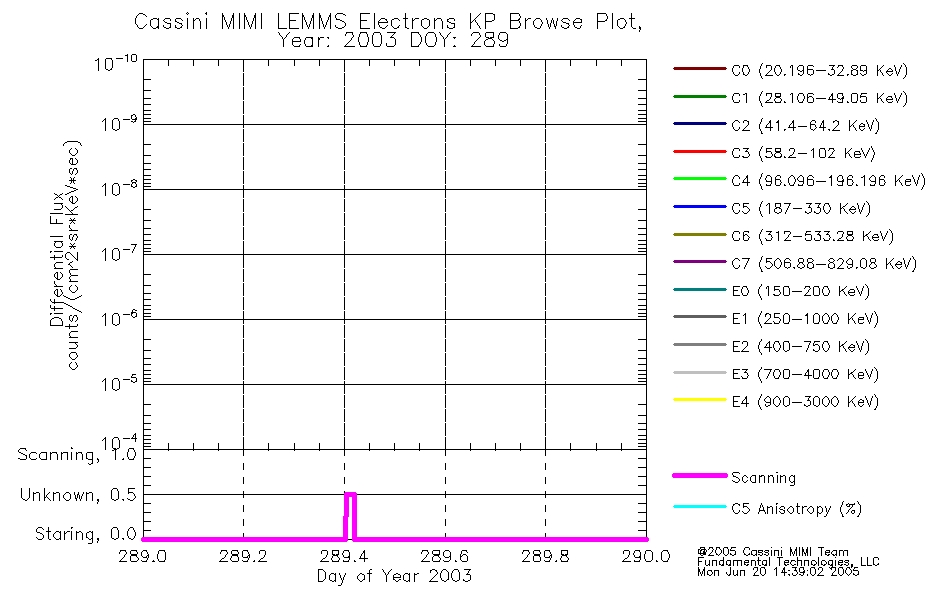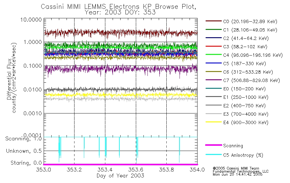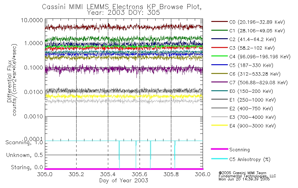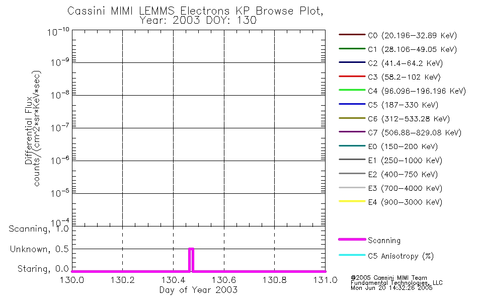 A browse data set is included with Key Parameter data that is calibrated using the algorithms provided in the Calibration volume. In addition, a series of images are provided with the KP browse data that displays the KP data which can lead the user to the particular times of interest. This data set should be among the first used by a user of any of the MIMI LEMMS archive as it will lead one to information required to search for more detailed or highly specialized features in the original data. The Key Parameters data set is not intented for direct use, only as a guide to finding points of interest.