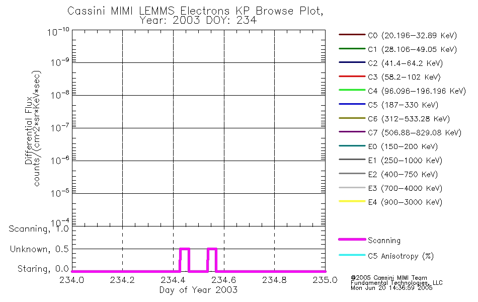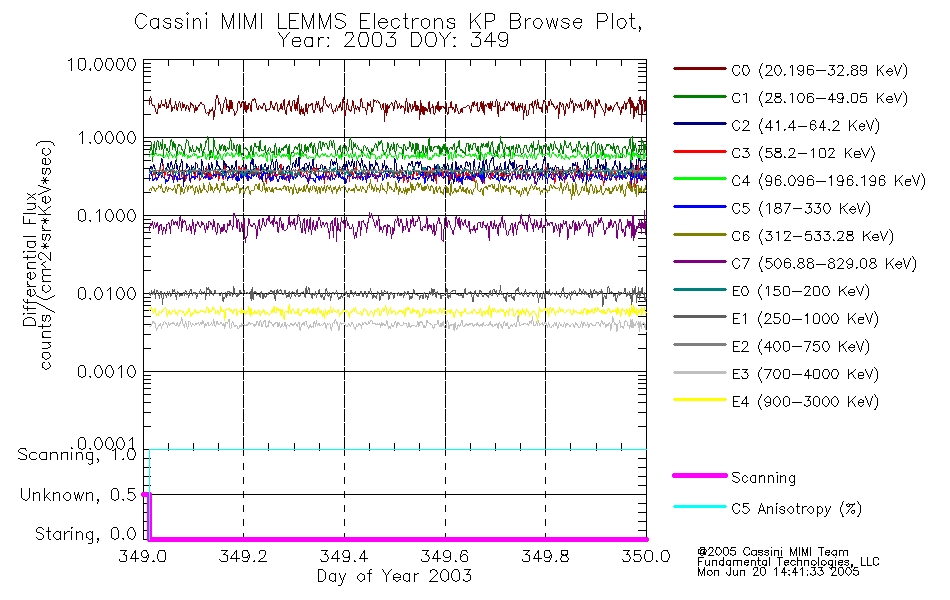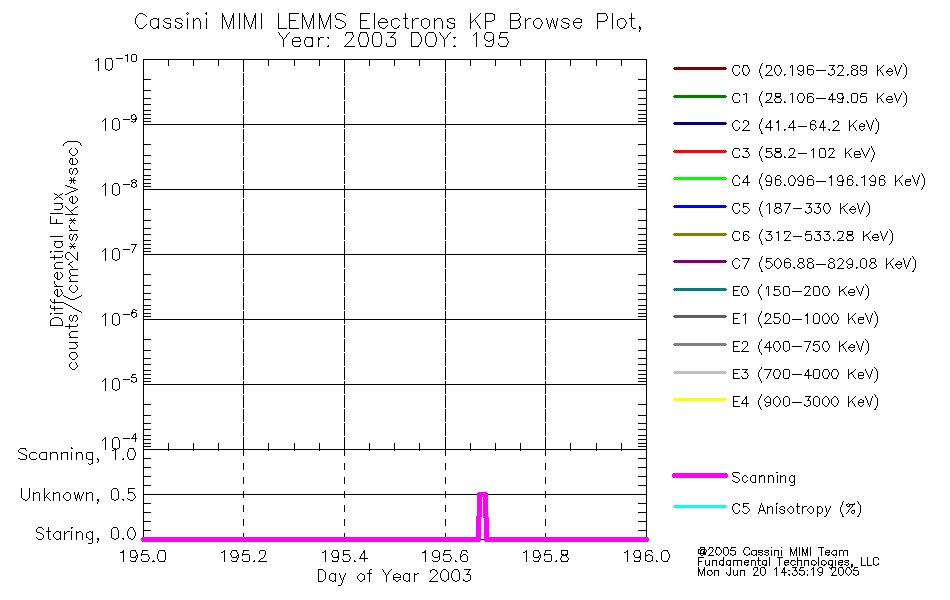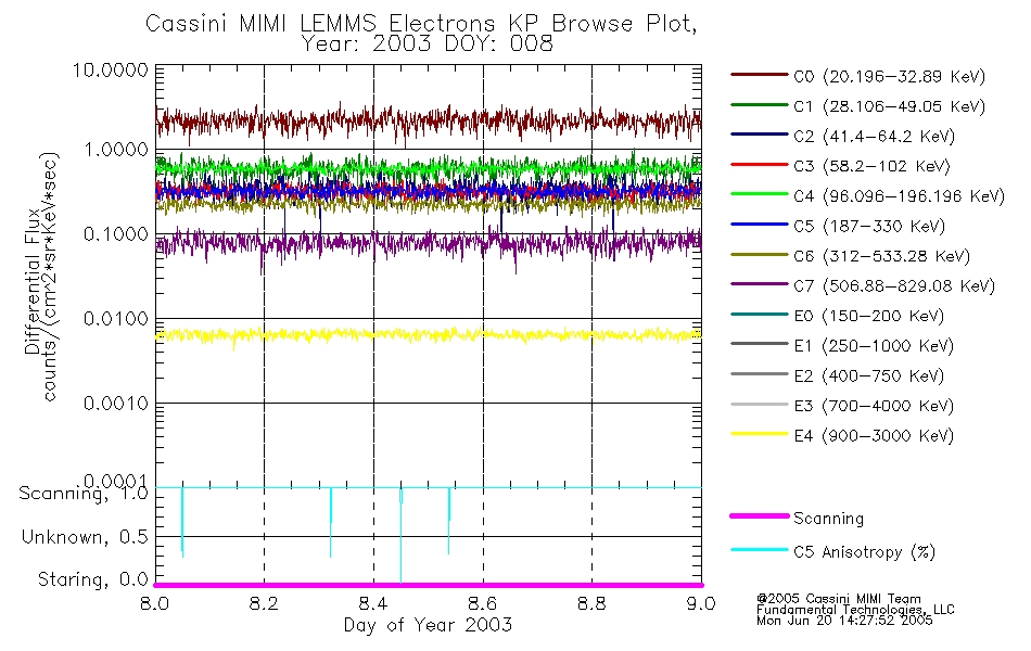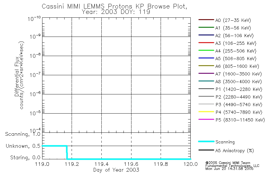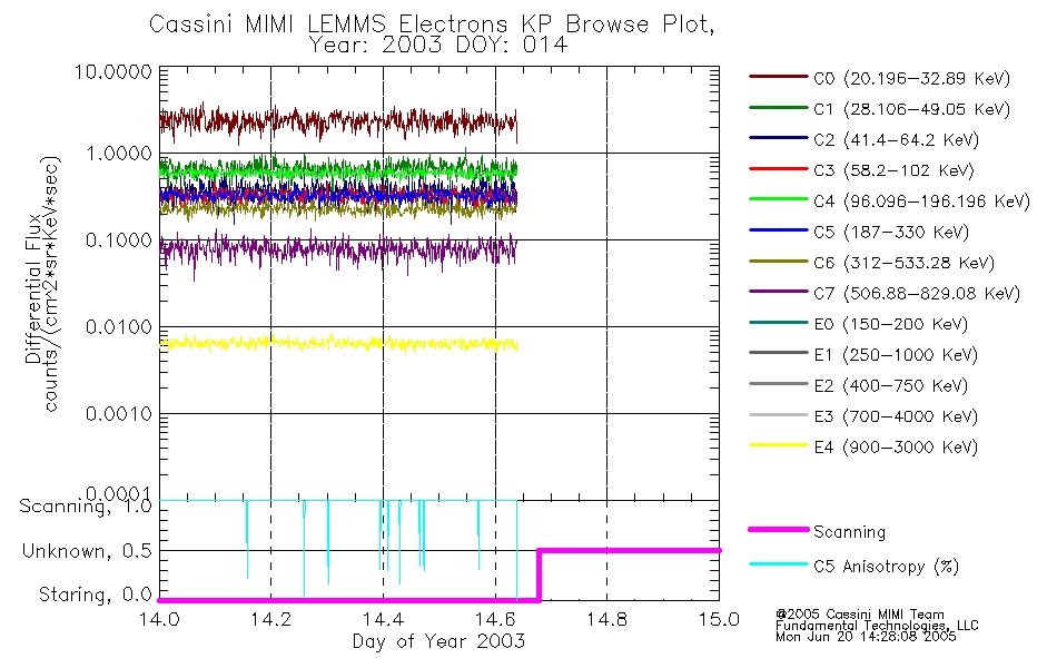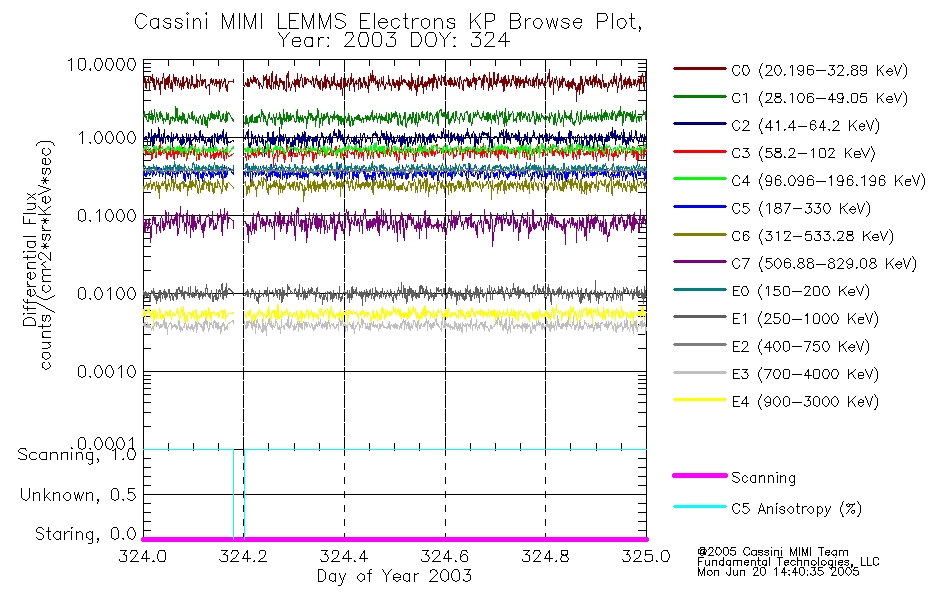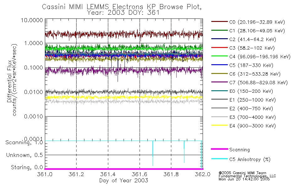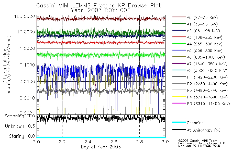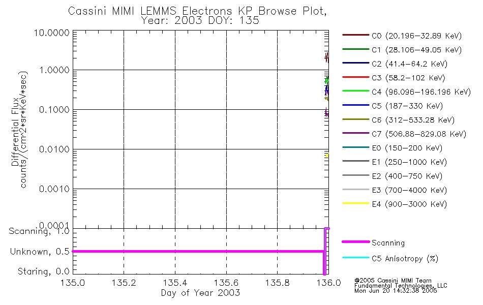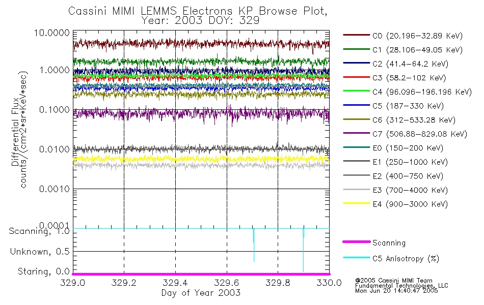 A browse data set is included with Key Parameter data that is calibrated using the algorithms provided in the Calibration volume. In addition, a series of images are provided with the KP browse data that displays the KP data which can lead the user to the particular times of interest. This data set should be among the first used by a user of any of the MIMI LEMMS archive as it will lead one to information required to search for more detailed or highly specialized features in the original data. The Key Parameters data set is not intented for direct use, only as a guide to finding points of interest.