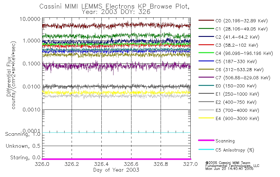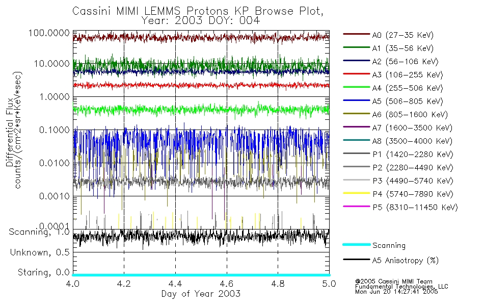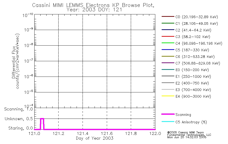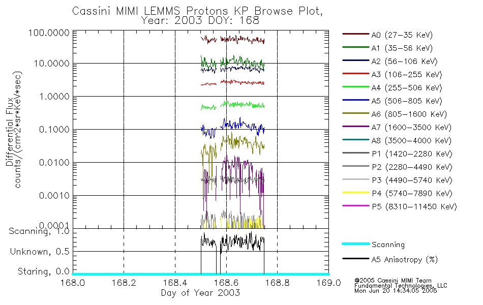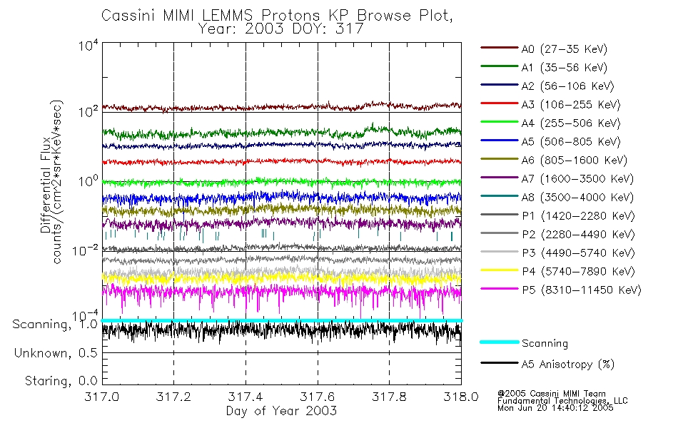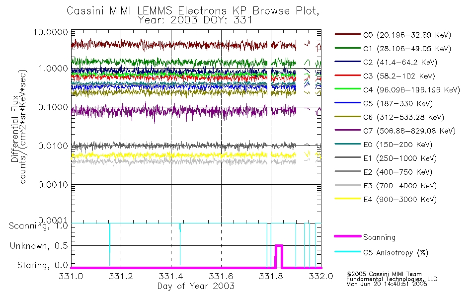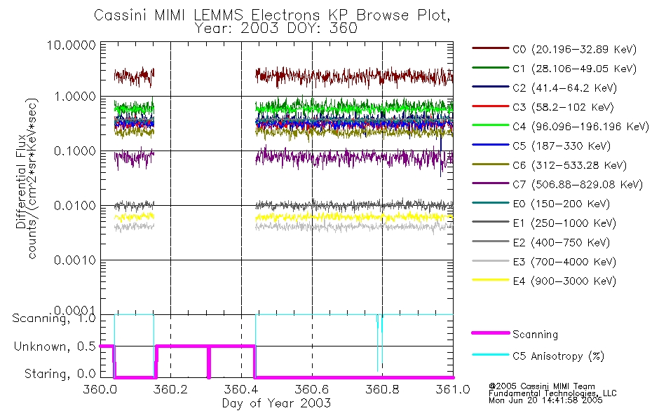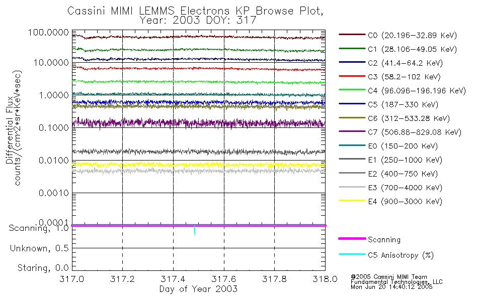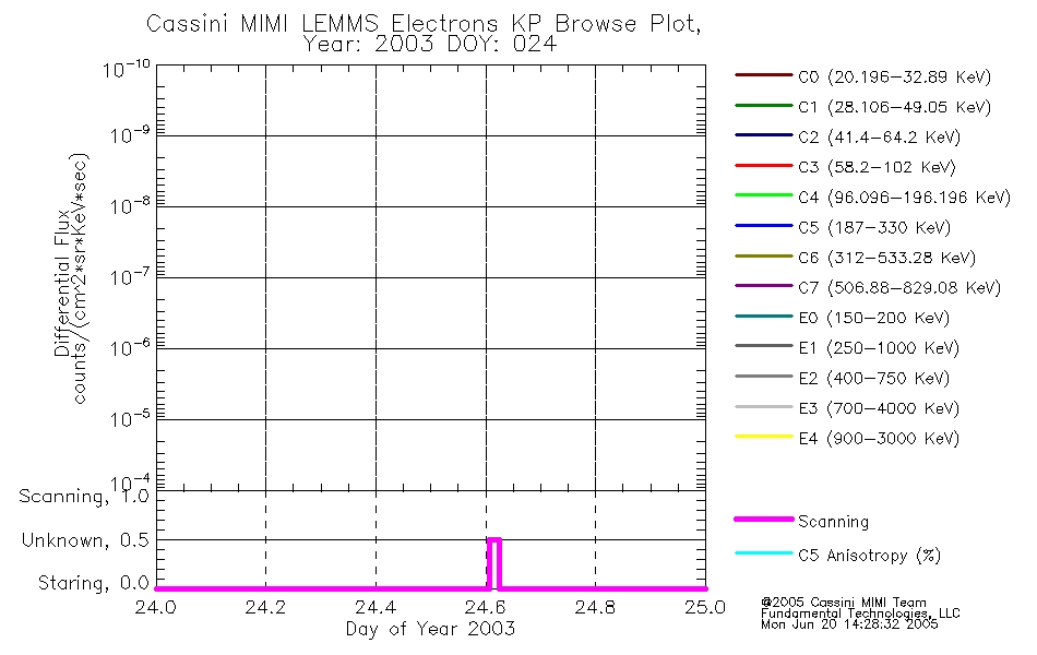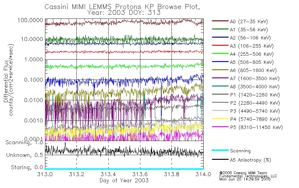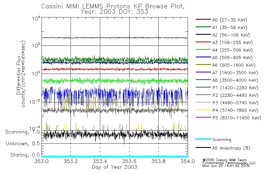 A browse data set is included with Key Parameter data that is calibrated using the algorithms provided in the Calibration volume. In addition, a series of images are provided with the KP browse data that displays the KP data which can lead the user to the particular times of interest. This data set should be among the first used by a user of any of the MIMI LEMMS archive as it will lead one to information required to search for more detailed or highly specialized features in the original data. The Key Parameters data set is not intented for direct use, only as a guide to finding points of interest.