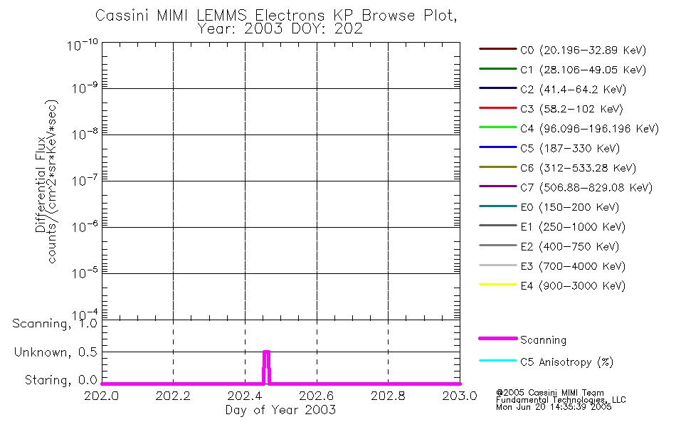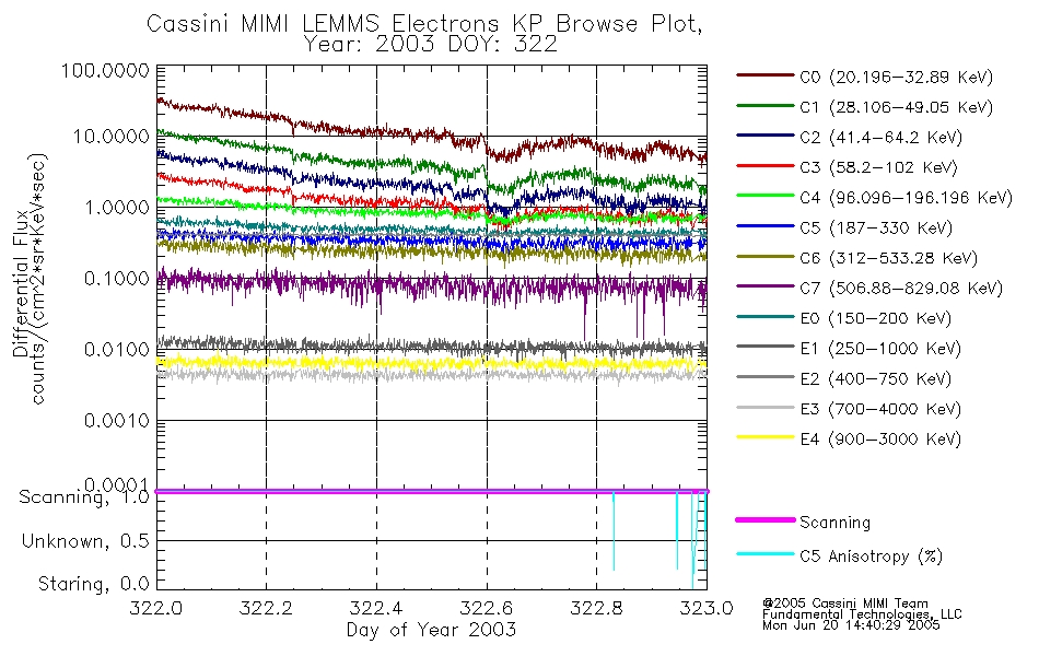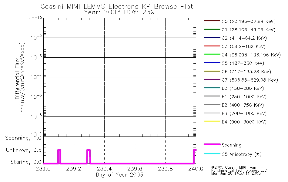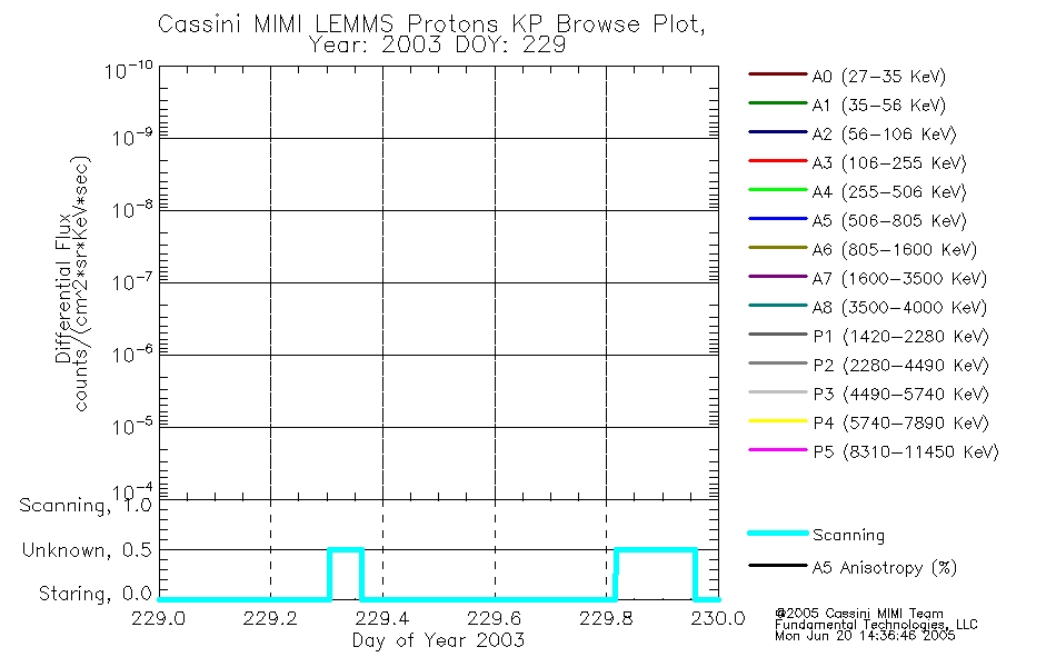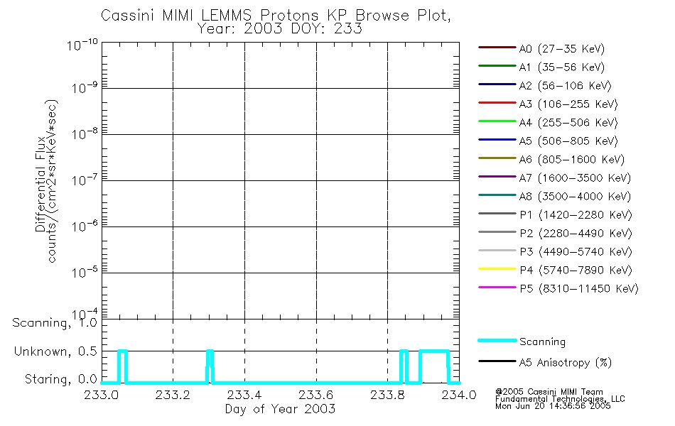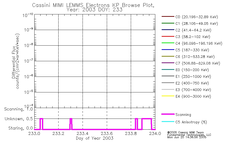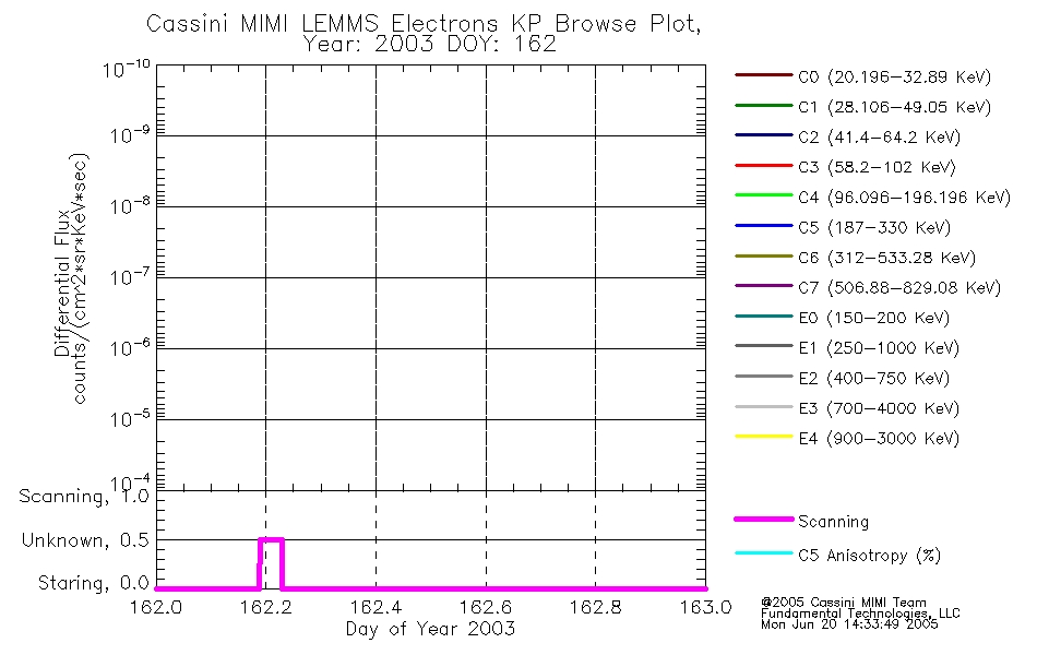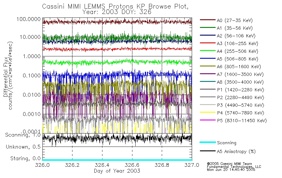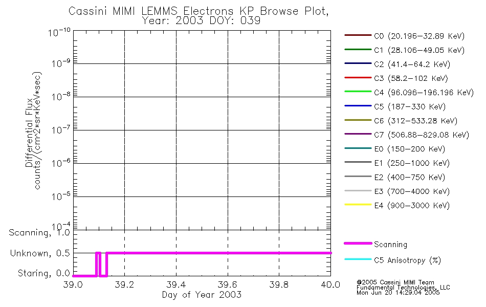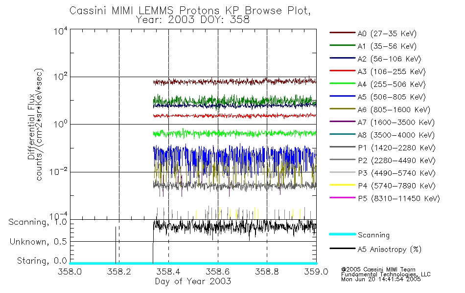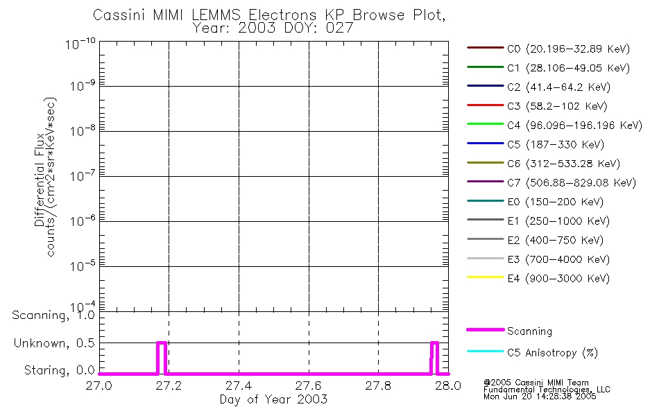 A browse data set is included with Key Parameter data that is calibrated using the algorithms provided in the Calibration volume. In addition, a series of images are provided with the KP browse data that displays the KP data which can lead the user to the particular times of interest. This data set should be among the first used by a user of any of the MIMI LEMMS archive as it will lead one to information required to search for more detailed or highly specialized features in the original data. The Key Parameters data set is not intented for direct use, only as a guide to finding points of interest.