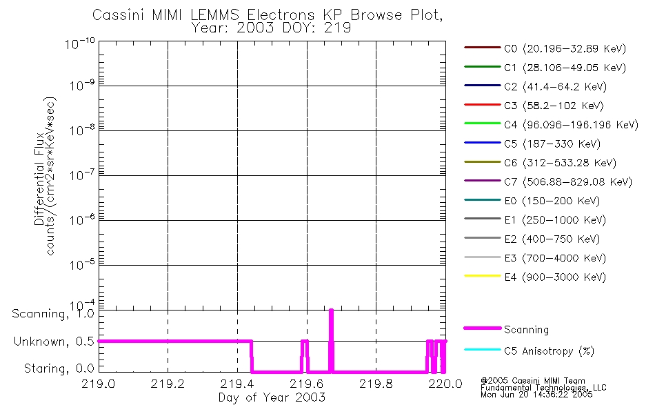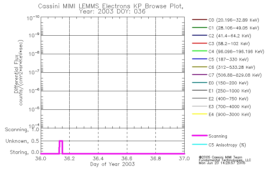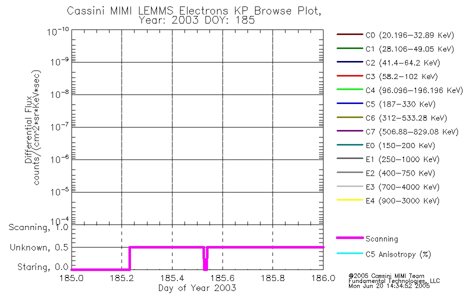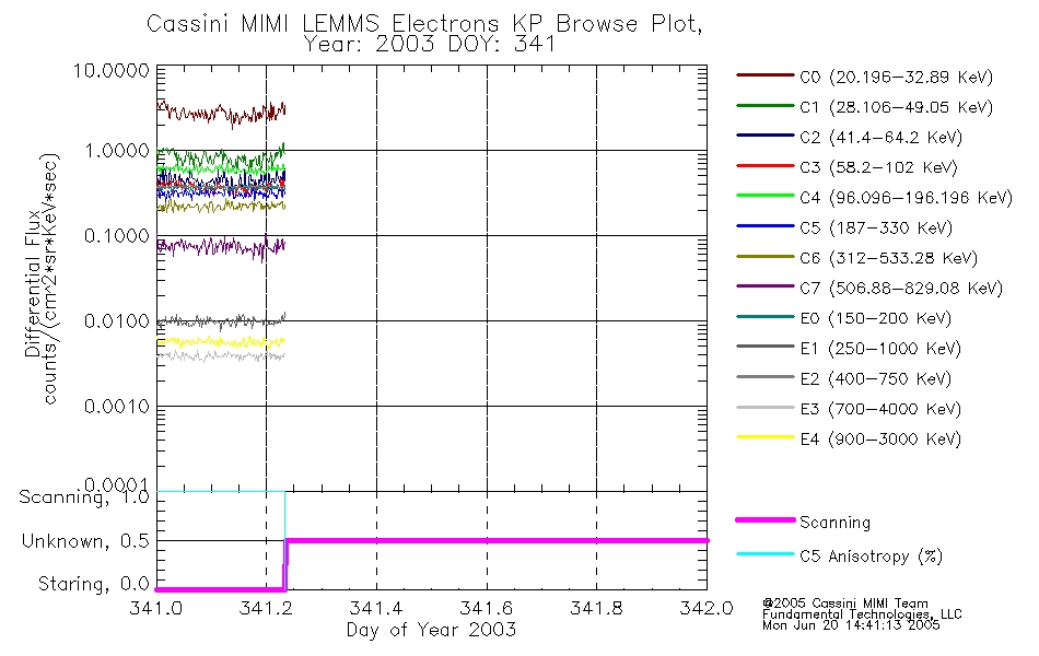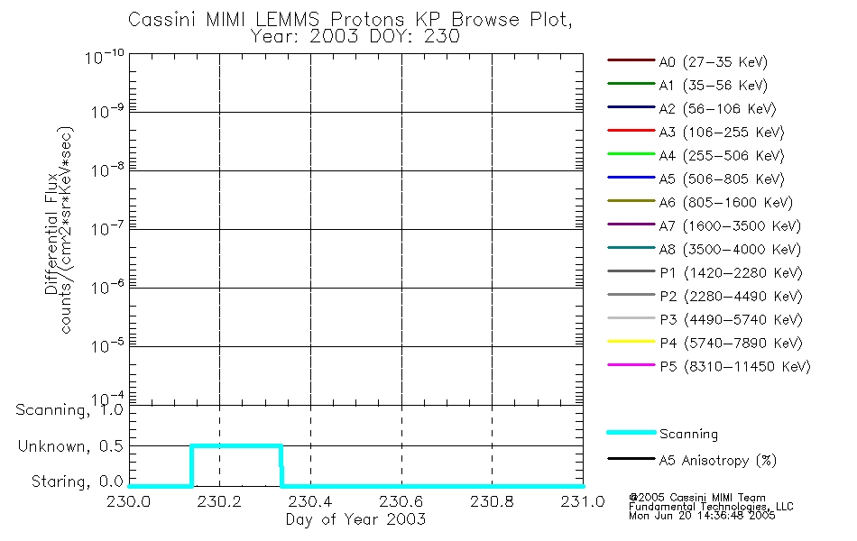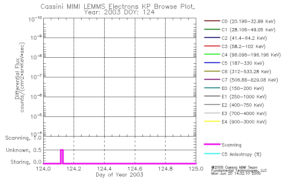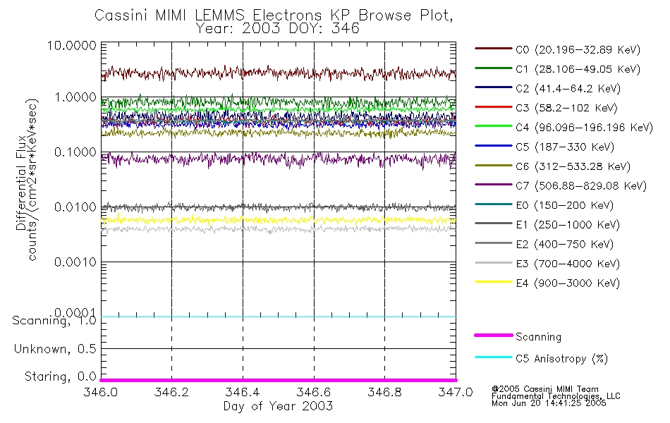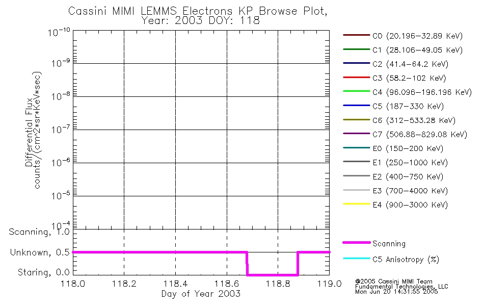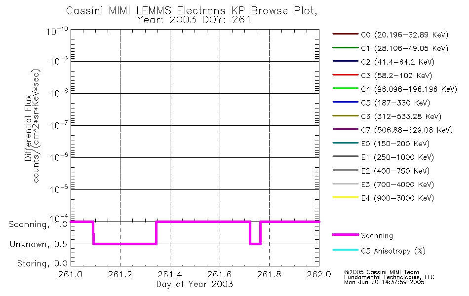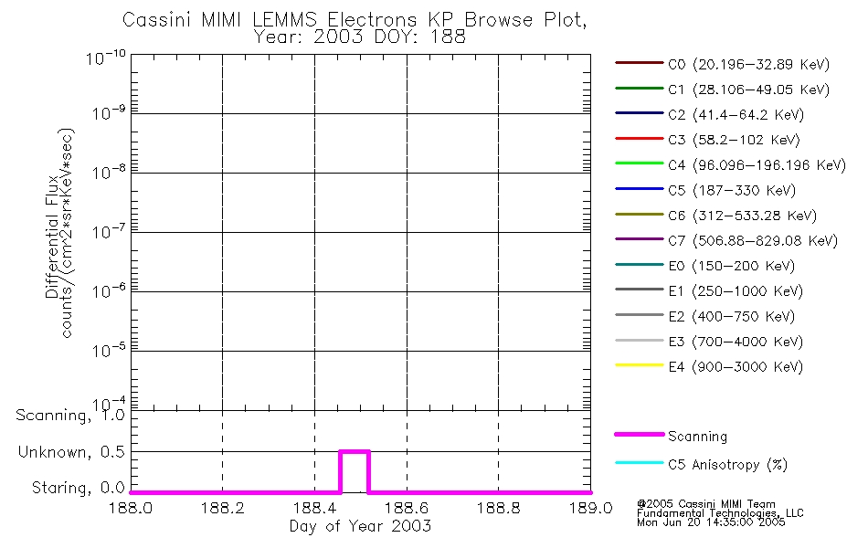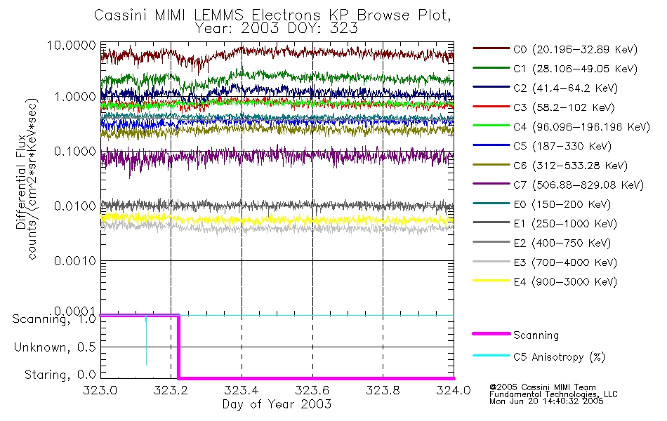 A browse data set is included with Key Parameter data that is calibrated using the algorithms provided in the Calibration volume. In addition, a series of images are provided with the KP browse data that displays the KP data which can lead the user to the particular times of interest. This data set should be among the first used by a user of any of the MIMI LEMMS archive as it will lead one to information required to search for more detailed or highly specialized features in the original data. The Key Parameters data set is not intented for direct use, only as a guide to finding points of interest.