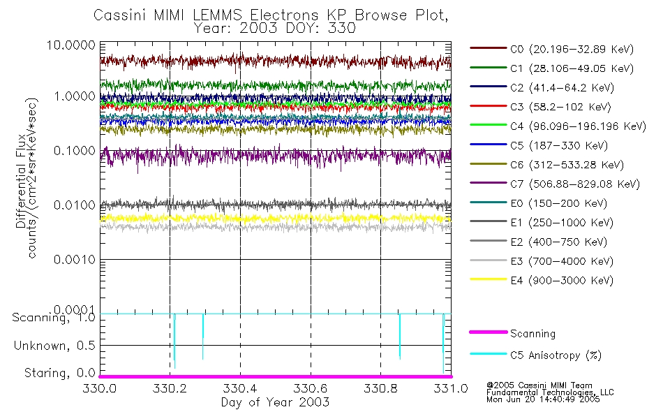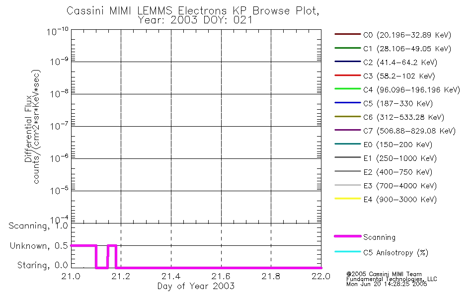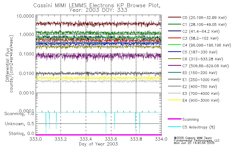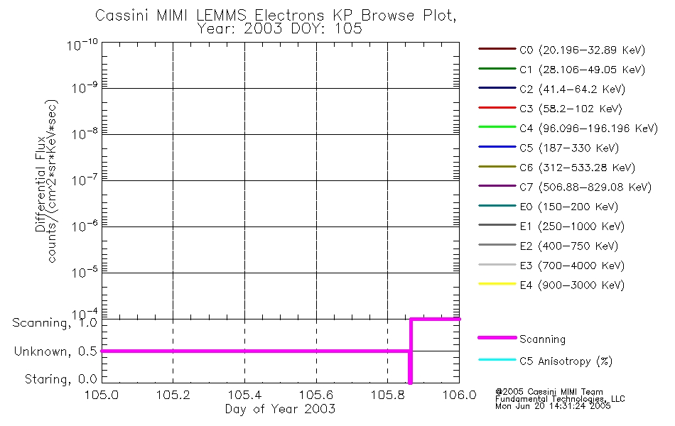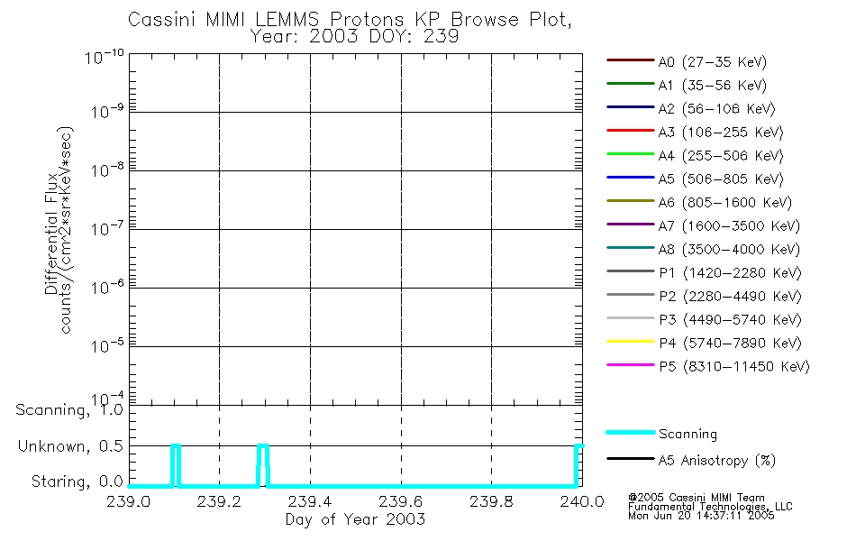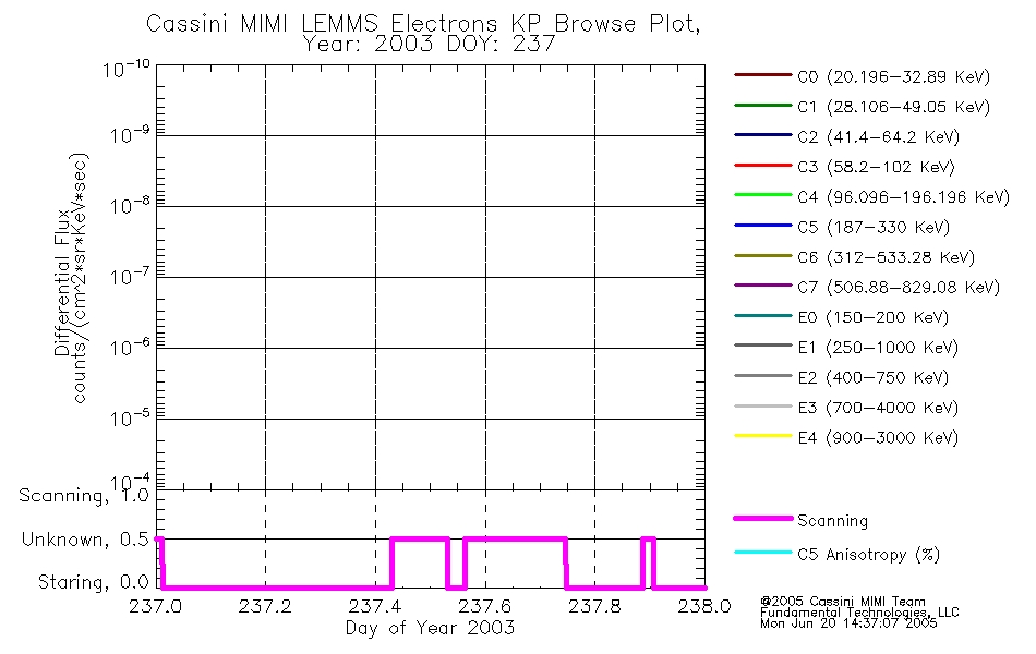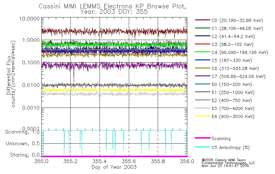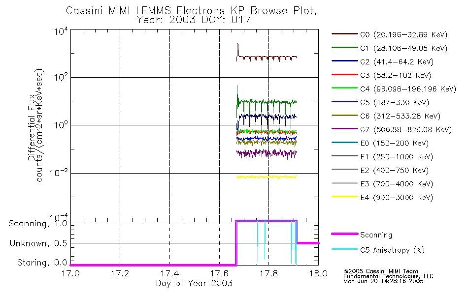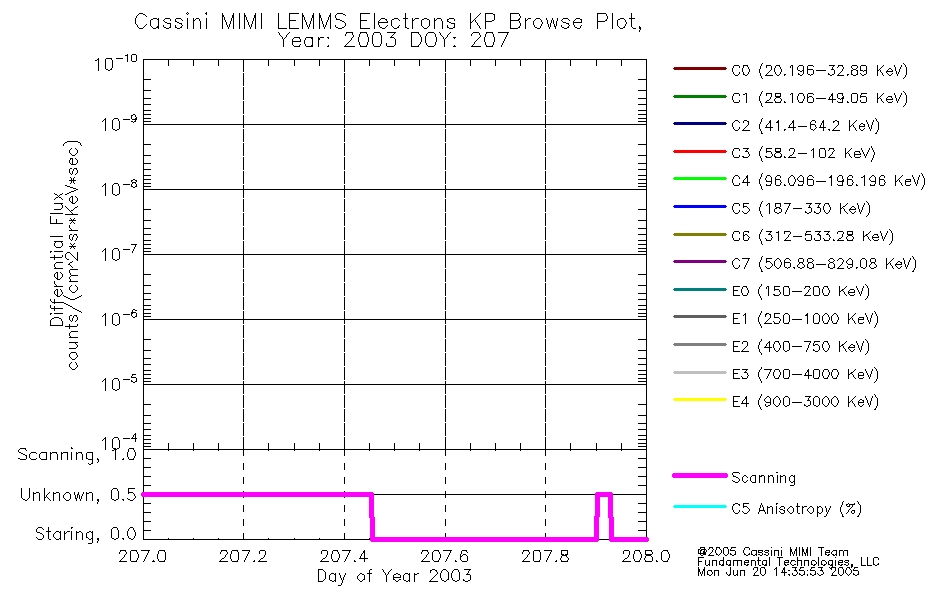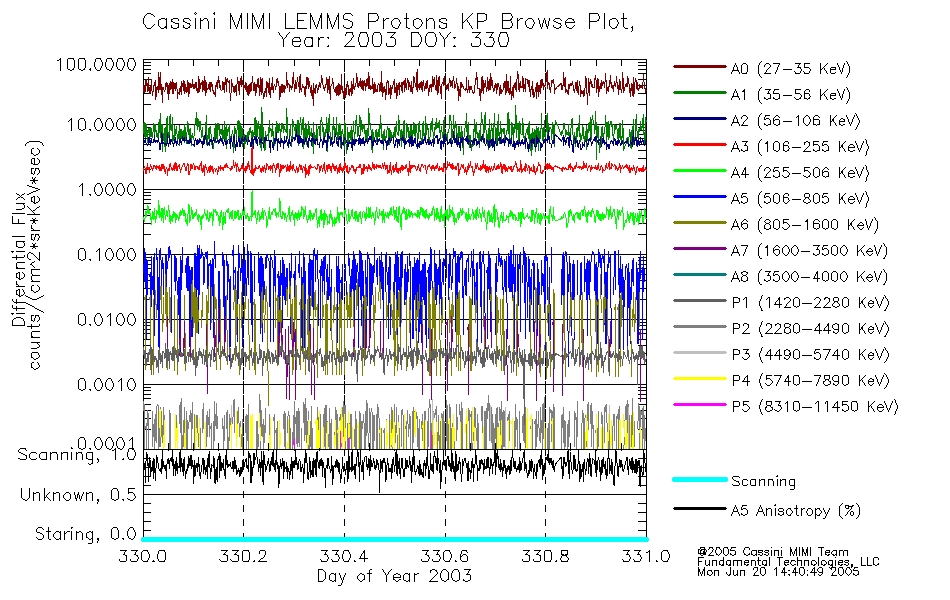 A browse data set is included with Key Parameter data that is calibrated using the algorithms provided in the Calibration volume. In addition, a series of images are provided with the KP browse data that displays the KP data which can lead the user to the particular times of interest. This data set should be among the first used by a user of any of the MIMI LEMMS archive as it will lead one to information required to search for more detailed or highly specialized features in the original data. The Key Parameters data set is not intented for direct use, only as a guide to finding points of interest.