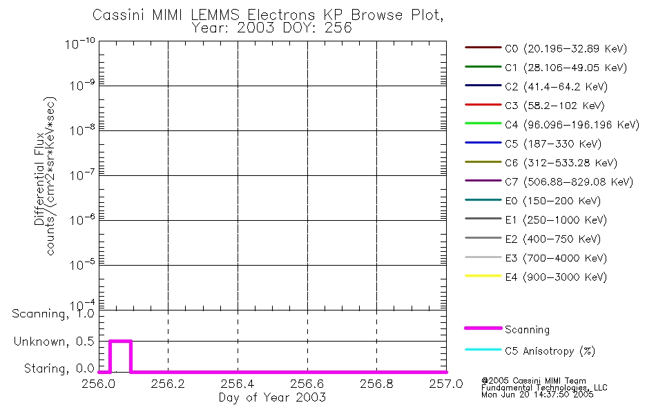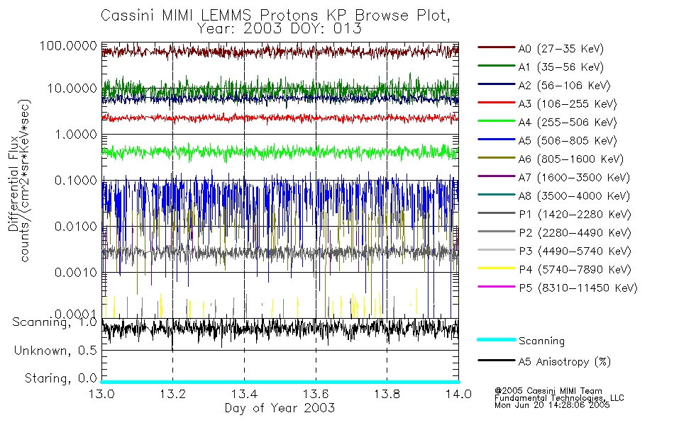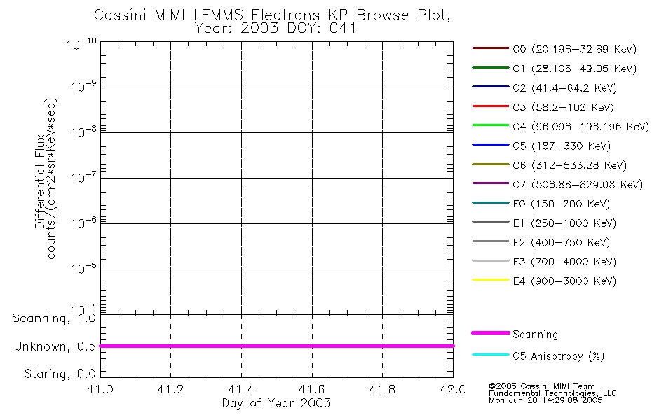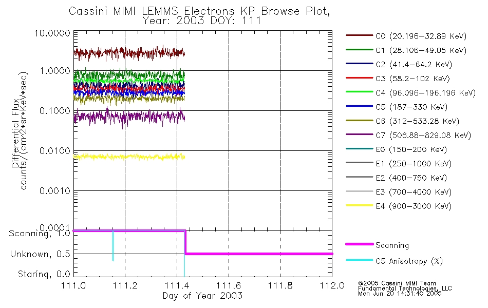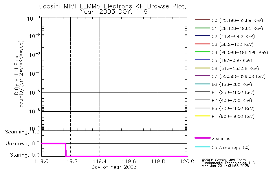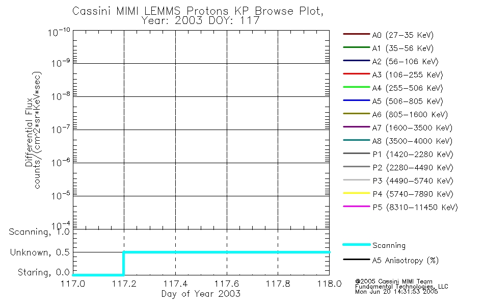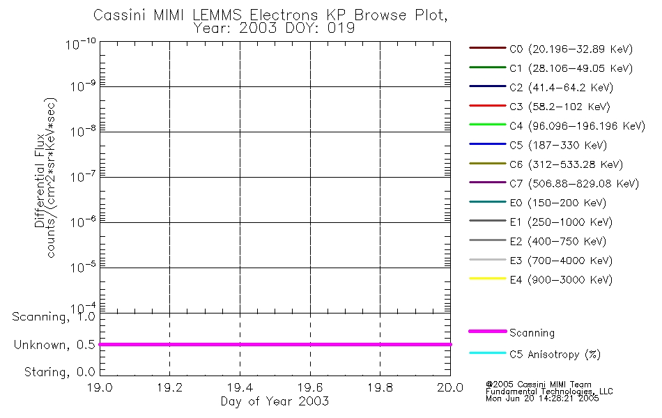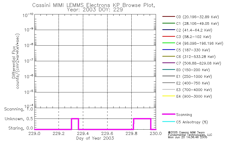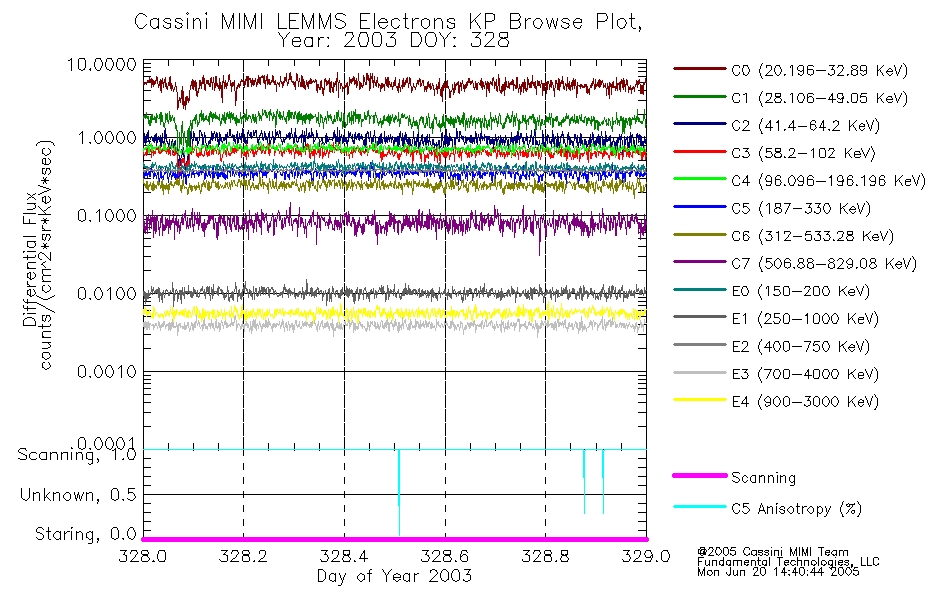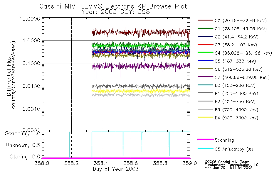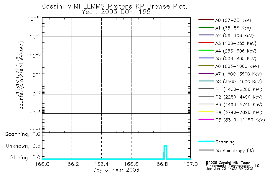 A browse data set is included with Key Parameter data that is calibrated using the algorithms provided in the Calibration volume. In addition, a series of images are provided with the KP browse data that displays the KP data which can lead the user to the particular times of interest. This data set should be among the first used by a user of any of the MIMI LEMMS archive as it will lead one to information required to search for more detailed or highly specialized features in the original data. The Key Parameters data set is not intented for direct use, only as a guide to finding points of interest.