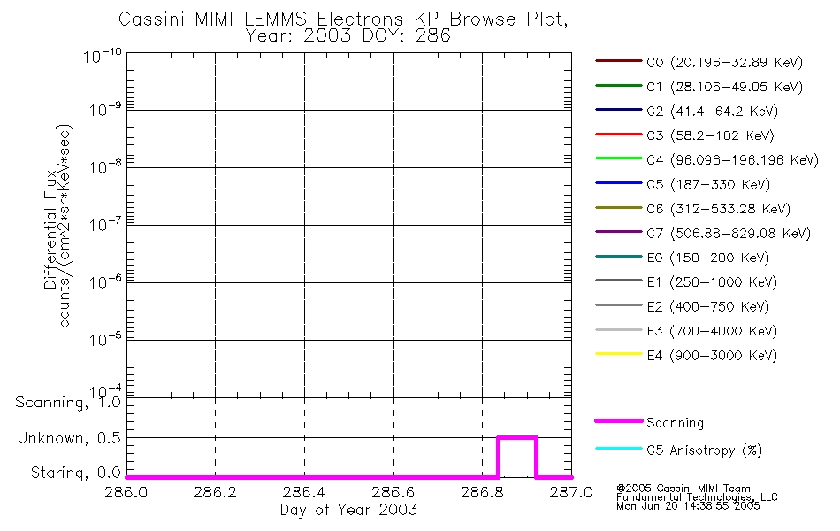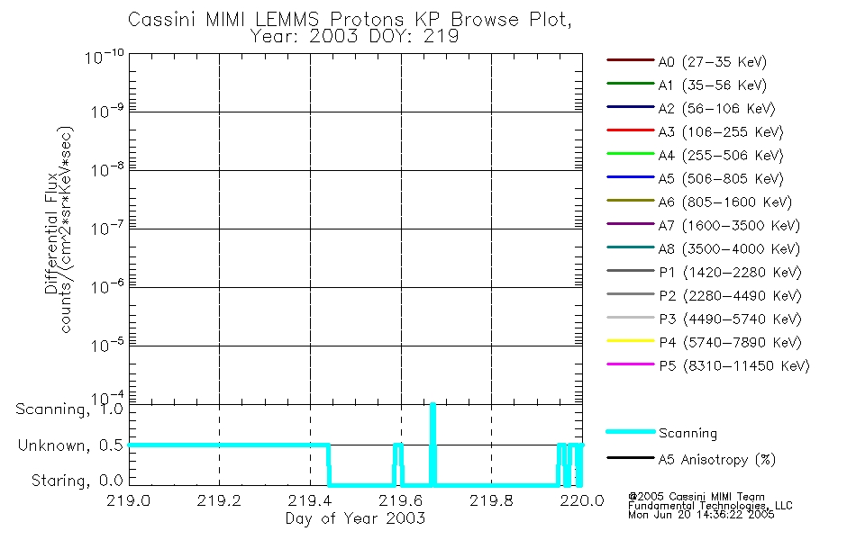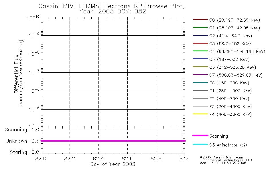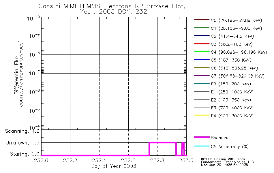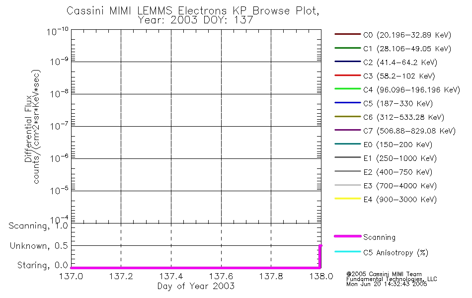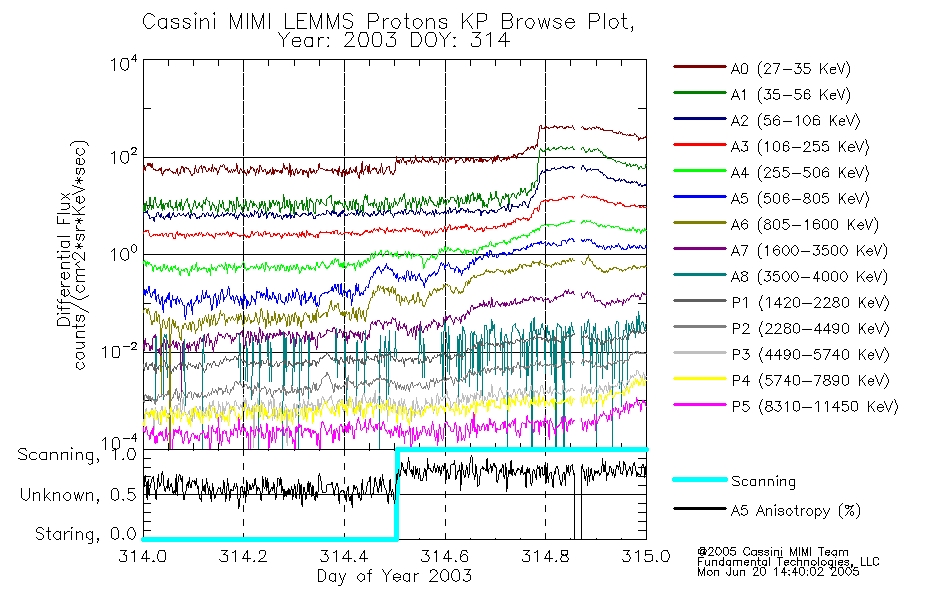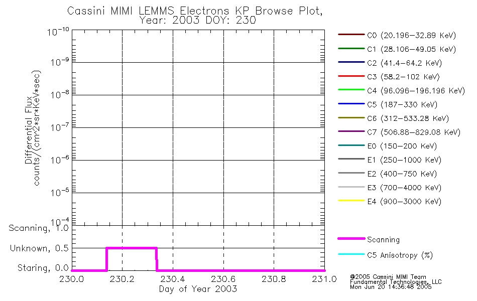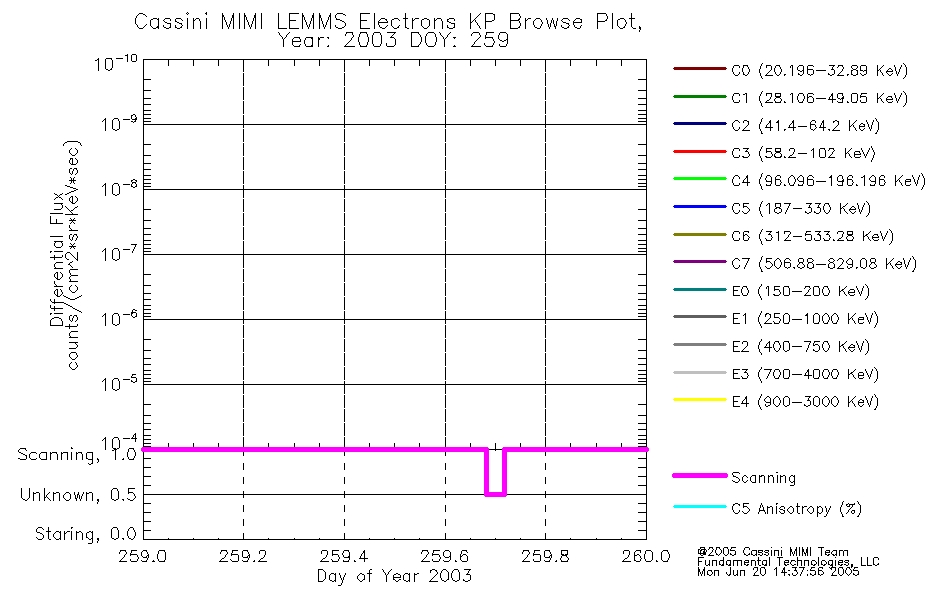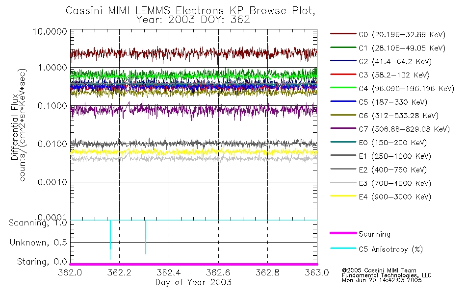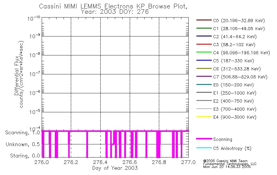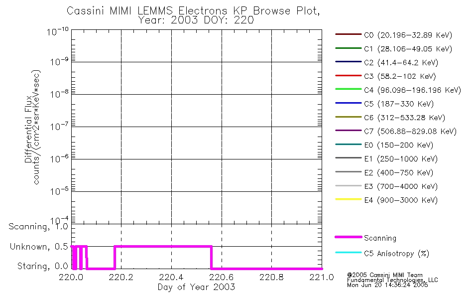A browse data set is included with Key Parameter data that is calibrated using the algorithms provided in the Calibration volume. In addition, a series of images are provided with the KP browse data that displays the KP data which can lead the user to the particular times of interest. This data set should be among the first used by a user of any of the MIMI LEMMS archive as it will lead one to information required to search for more detailed or highly specialized features in the original data. The Key Parameters data set is not intented for direct use, only as a guide to finding points of interest.