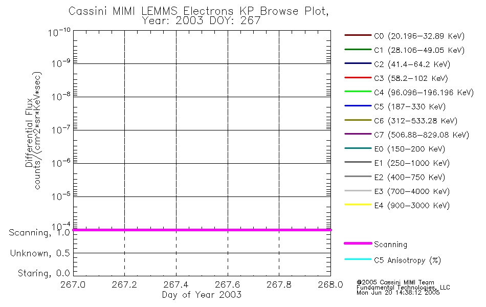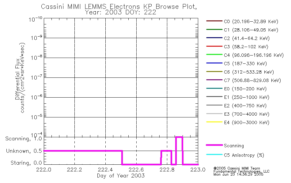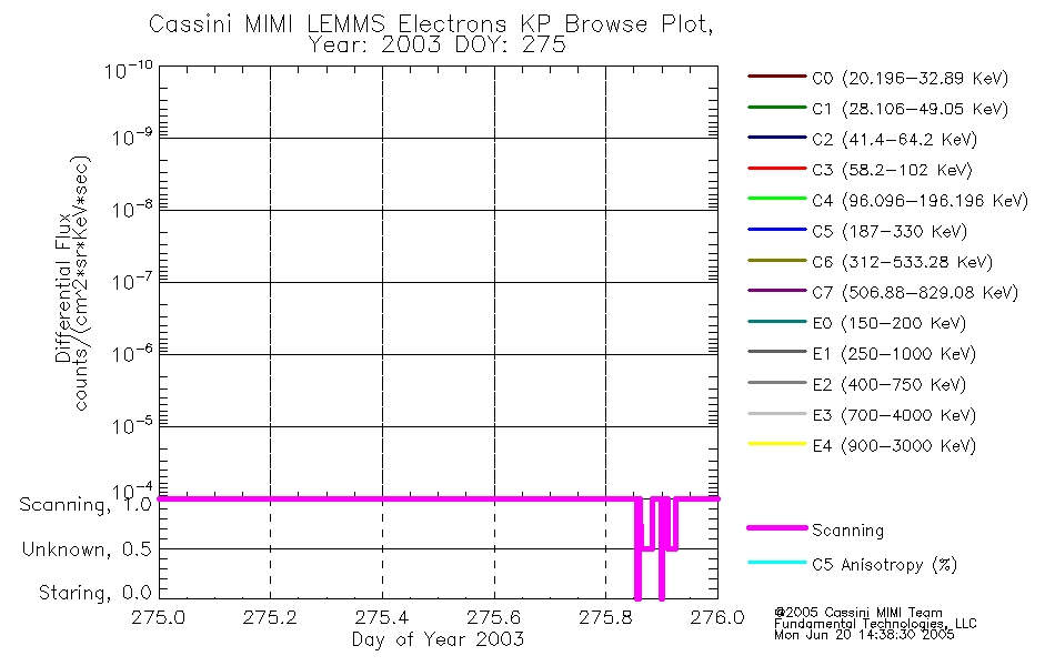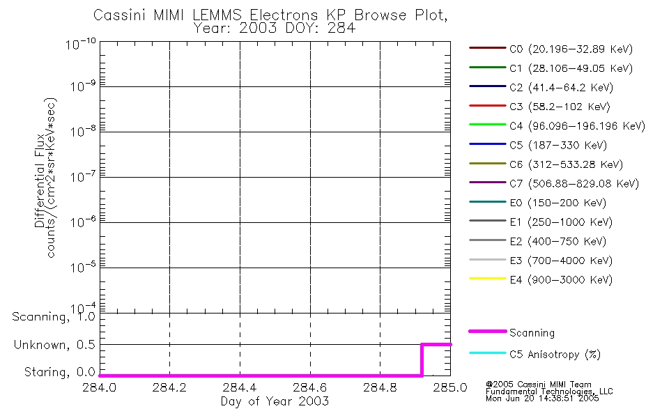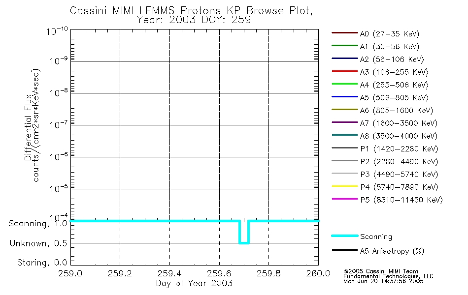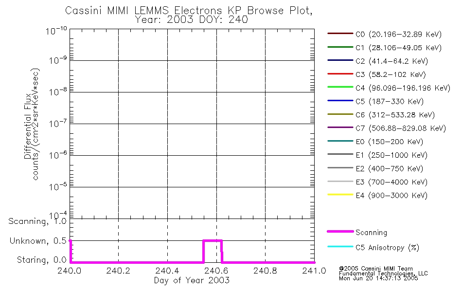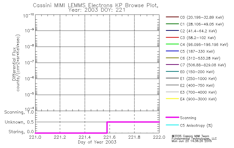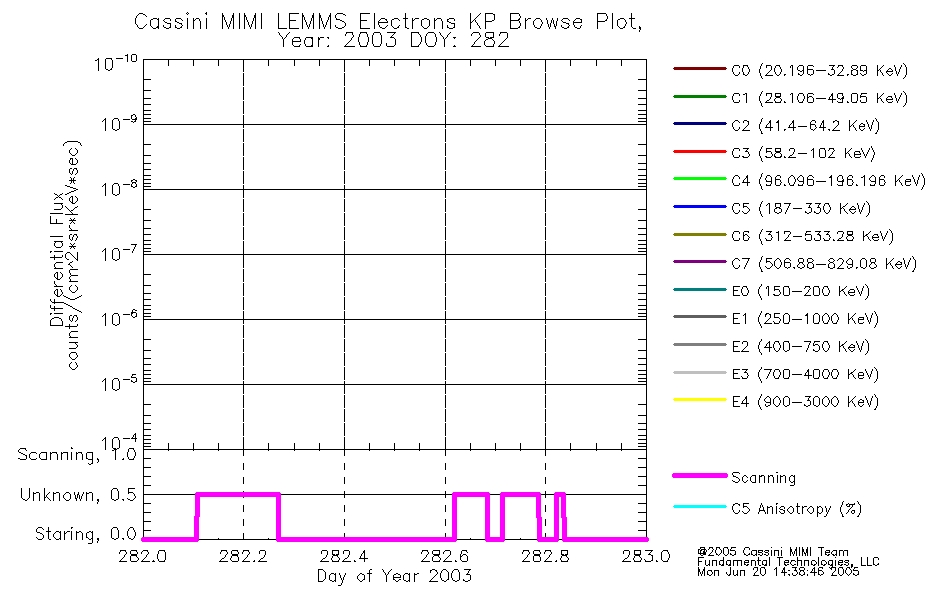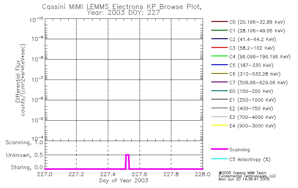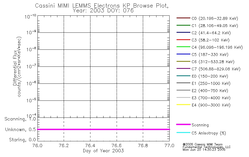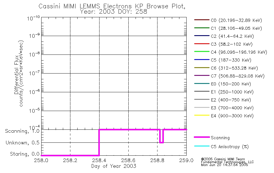 A browse data set is included with Key Parameter data that is calibrated using the algorithms provided in the Calibration volume. In addition, a series of images are provided with the KP browse data that displays the KP data which can lead the user to the particular times of interest. This data set should be among the first used by a user of any of the MIMI LEMMS archive as it will lead one to information required to search for more detailed or highly specialized features in the original data. The Key Parameters data set is not intented for direct use, only as a guide to finding points of interest.