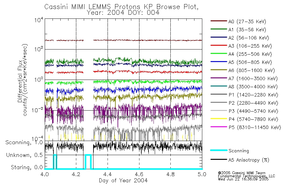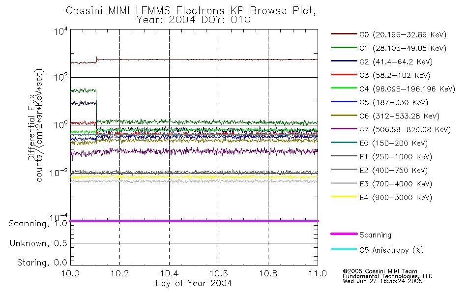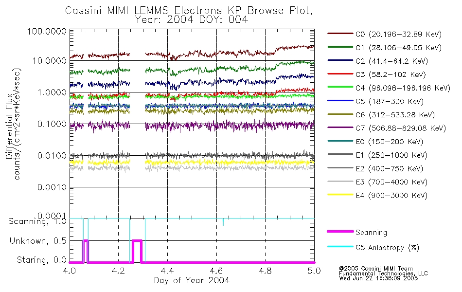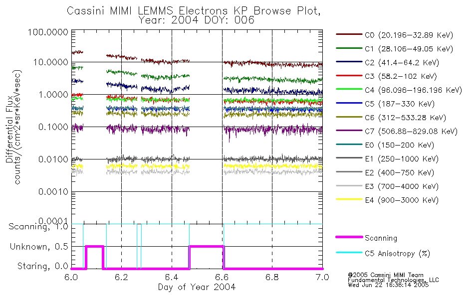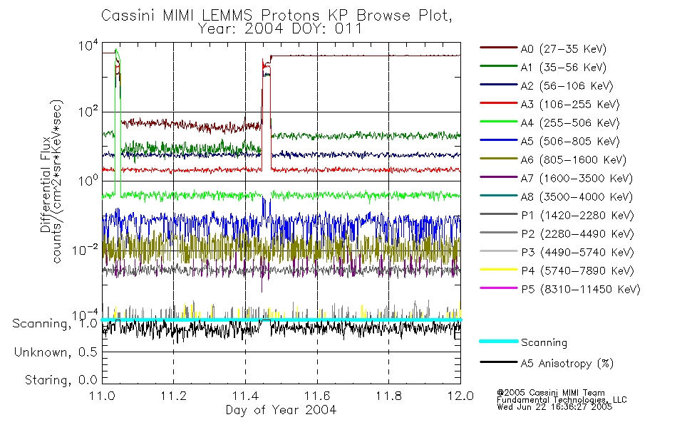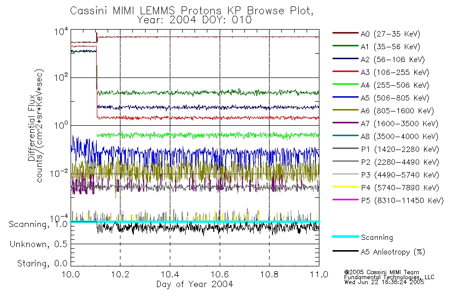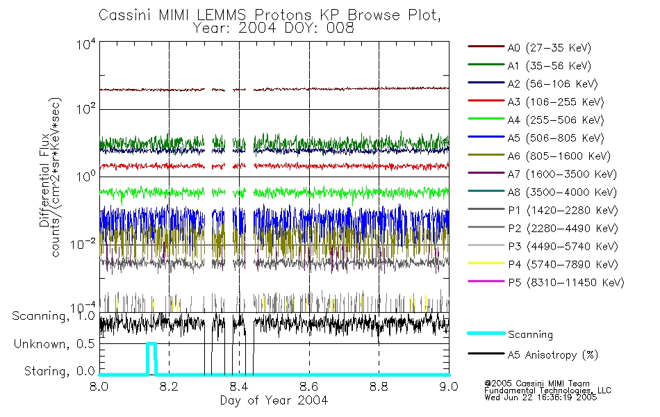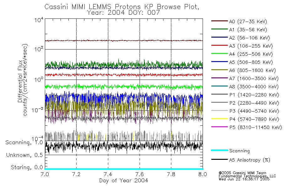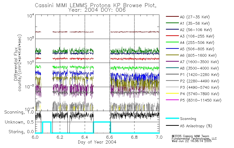 A browse data set is included with Key Parameter data that is calibrated using the algorithms provided in the Calibration volume. In addition, a series of images are provided with the KP browse data that displays the KP data which can lead the user to the particular times of interest. This data set should be among the first used by a user of any of the MIMI LEMMS archive as it will lead one to information required to search for more detailed or highly specialized features in the original data. The Key Parameters data set is not intented for direct use, only as a guide to finding points of interest.