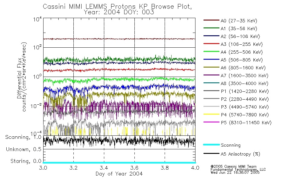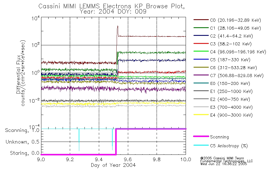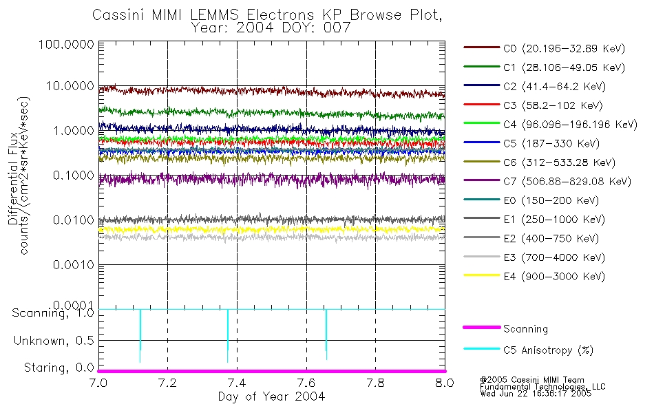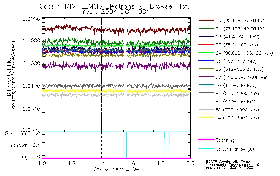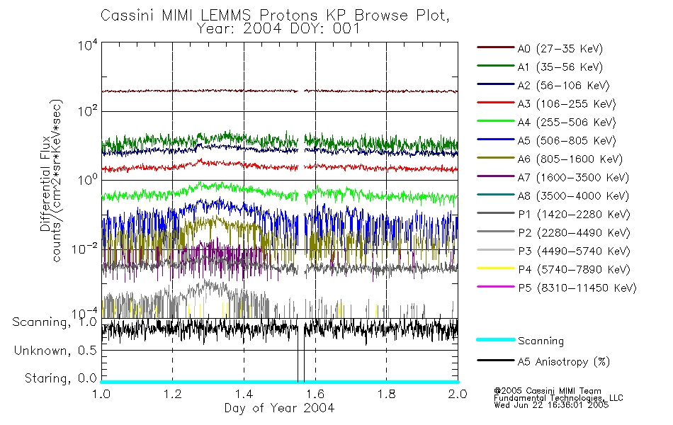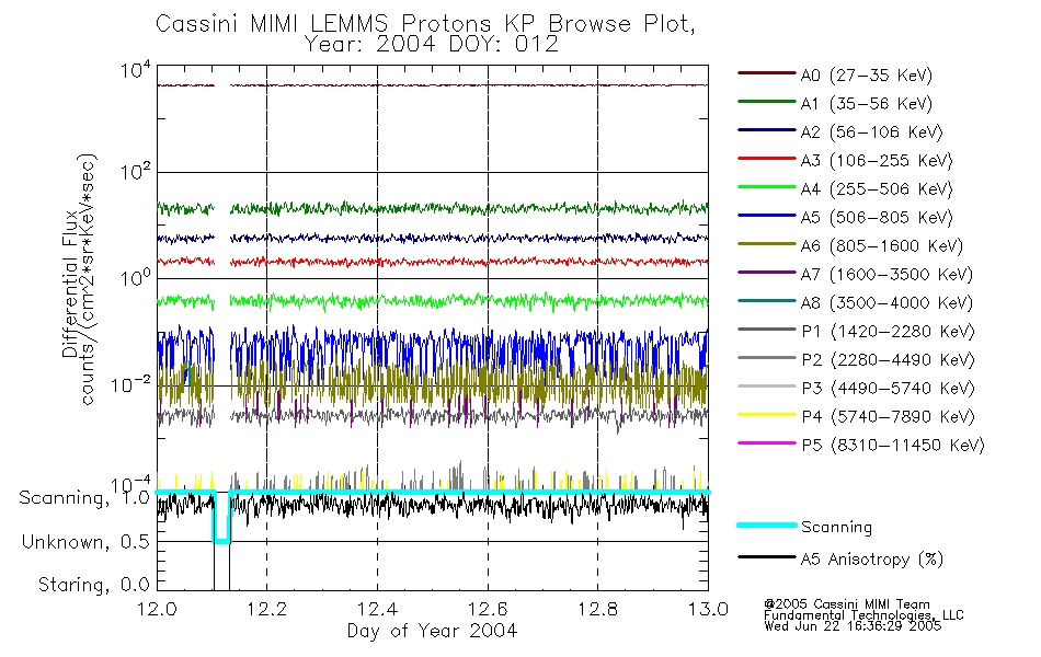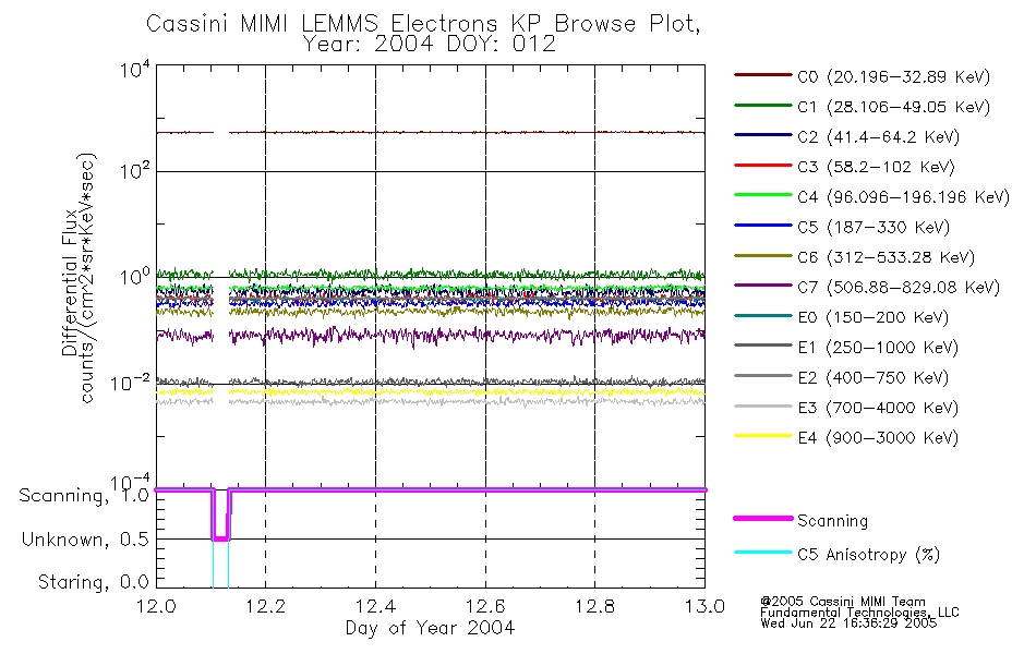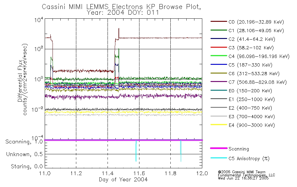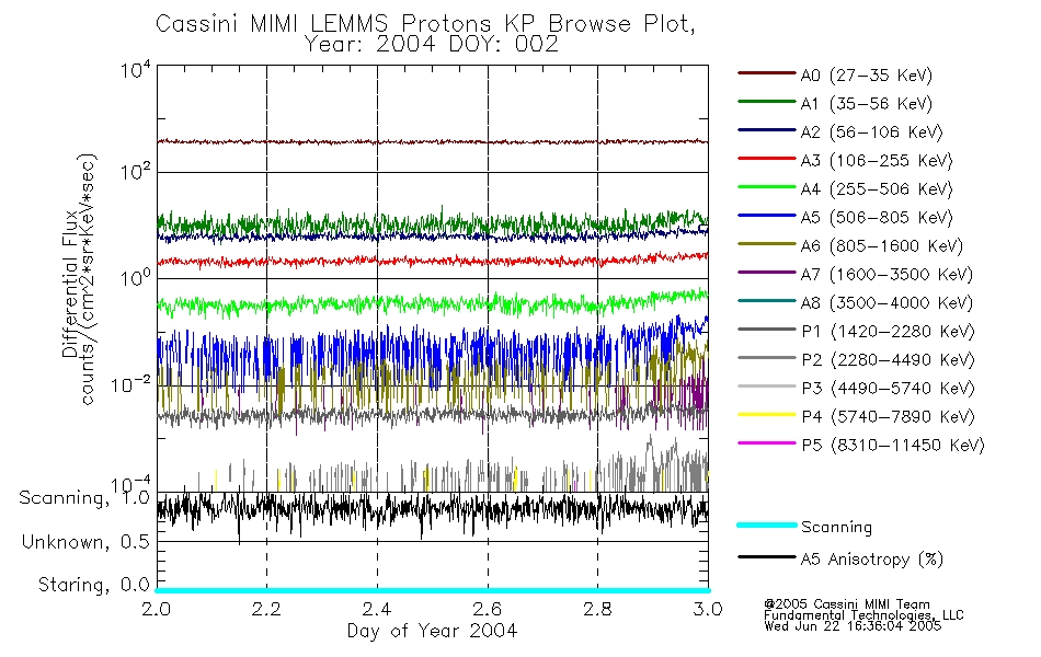 A browse data set is included with Key Parameter data that is calibrated using the algorithms provided in the Calibration volume. In addition, a series of images are provided with the KP browse data that displays the KP data which can lead the user to the particular times of interest. This data set should be among the first used by a user of any of the MIMI LEMMS archive as it will lead one to information required to search for more detailed or highly specialized features in the original data. The Key Parameters data set is not intented for direct use, only as a guide to finding points of interest.
