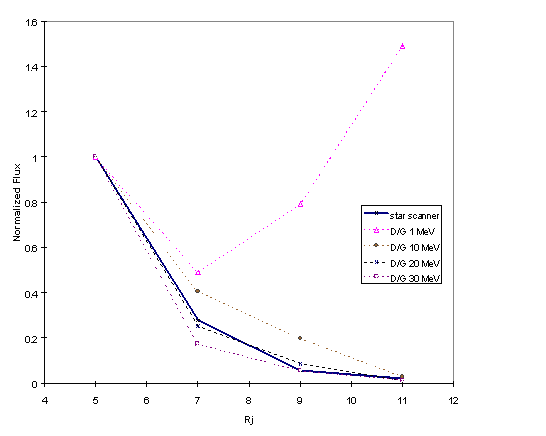 The star scanner is an inferior to the EPD because that instrument is able to provide much better pitch angle data as well as being able to sample multiple species and energy ranges. Nevertheless, the star scanner has the advantage of always being included in the spacecraft telemetry stream. During the frequent times when EPD has been turned off either intentionally or as a result of a spacecraft anomaly or itself has temporarily failed (presumably due to radiation effects), the star scanner can fill gaps in the data set equivalent to the EPD B1/DC2 and DC3 channels. There has also been a "non-science" orbit, E13, when the all science instruments were off due to solar conjunction but the star scanner continued reporting data. Finally, The EPD detector is quite sensitive to radiation as evidenced both by the instrument anomalously turning itself off and the frequent need to hide the detector behind a shield when inside of about 8.5 RJ. The author has not been able to get an answer as to how close into Jupiter EPD can function, but it is almost certain that the star scanner can withstand and report on the worst of the flux near 3 RJ.