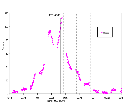 The star scanner data has already been used in one scientific presentation [Yu et al. 1999] although it was not yet known at that time what the star scanner was detecting. The star scanner has sufficient temporal resolution to clearly identify large scale features of the Jovian environment such as flux increases at the magnetic equator crossings (figure 15), the reduction of electron flux at the Io L-shell (figure 9) and a smaller reduction within a few radii of Europa.