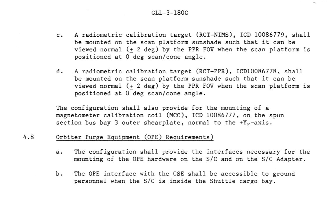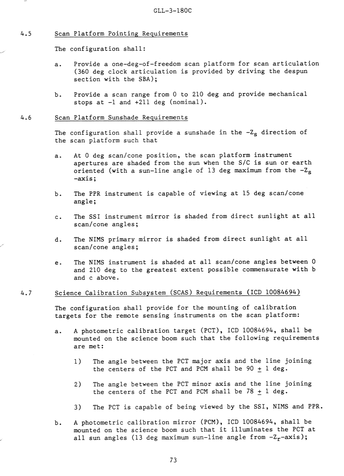 | page 73 | Scan Platform Pointing Requirements Scan Platform Sunshade Requirements Science Calibration Subsystem (SCAS) Requirements |