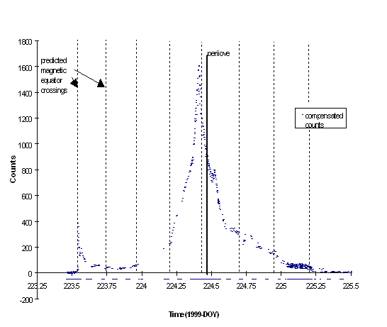 The star scanner data has already been used in one scientific presentation [Yu et al. 1999] although it was not yet known at that time what the star scanner was detecting. The star scanner has sufficient temporal resolution to clearly identify large scale features of the Jovian environment such as flux increases at the magnetic equator crossings (figure 15), the reduction of electron flux at the Io L-shell (figure 9) and a smaller reduction within a few radii of Europa.