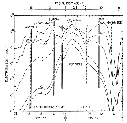 | 8. Pioneer 10 Data showing Absolute Omnidirectional Intensities of Electrons in Six Energy Ranges (Baker and Van Allen, 1976) | 18 | |