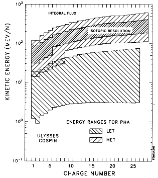 FIGURE 2. Energy and nuclear charge ranges of the HET and LET COSPIN sensor sub-systems.