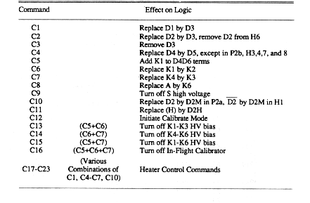 The DPU software includes a special backup memory mode of operation for use to partially fill in gaps between real time telemetry acquisitions if both spacecraft tape recorders should fail, or if it should happen that an anticipated gap between real time telemetry passes should exceed the maximum period for which data can be stored on the tape recorders. In this mode, which is entered by command, a limited number of readings of selected spin averaged counting rate channels are taken at regular intervals and stored in the random access memory of the DPU until they can be read out during a real time telemetry pass. Normal operation is resumed by command. Up to 159 data samples may be collected, and depending upon the length of the anticipated gap, the interval between samples of the data channels may be chosen to provide coverage for periods from 5.6 to 45.2 hours (at 1024 bps). At lower bit rates, the maximum intervals of coverage are proportionately longer. The counting rate channels included are L4-11, A3, H2, F2, and K13-20, defined in the Tables 4, 5, 7, 9, and 10, respectively. These counting rates provide information concerning time variations in fluxes of low energy protons (0.3 - 3.8 MeV) and electrons (4 - 12 MeV).
