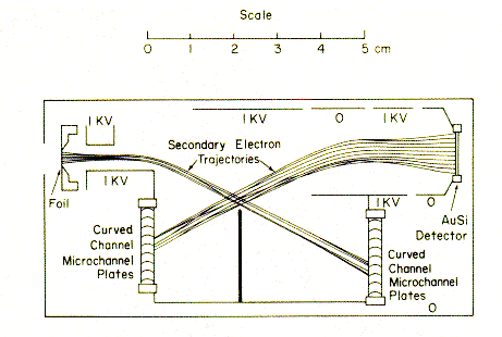 assemblies, and the curved, grid supported carbon foil. The shapes of