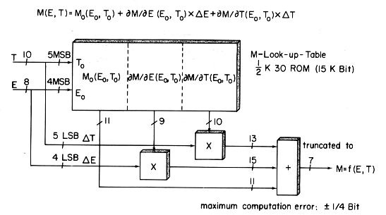 scheme. A 15 kbit ROM look-up table stores coefficients for the Taylor