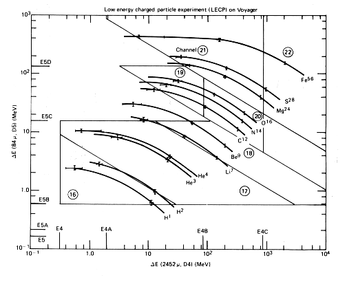 Abstract. The Low Energy Charged Particle (LECP) experiment on the Voyager spacecraft is designed to provide comprehensive measurements of energetic particles in the Jovian, Saturnian, Uranian and interplanetary environments. These measurements will be used in establishing the morphology of the magnetospheres of Saturn and Uranus, including bow shock, magnetosheath, magnetotail, trapped radiation, and satellite-energetic particle interactions. The experiment consists of two subsystems, the Low Energy Magnetospheric Particle Analyzer (LEMPA) whose design is optimized for magnetospheric measurements, and the Low Energy Particle Telescope (LEPT) whose design is optimized for measurements in the distant magnetosphere and the interplanetary medium. The LEMPA covers the energy range from ~10 keV to > 11 MeV for electrons and from ~15 keV to ≈> 150 MeV for protons and heavier ions. The dynamic range is ~0.1 to ≈> 1011 cm-2 sec-1 sr-1 overall, and extends to 1013 cm-2 sec-1 sr-1 in a current mode operation for some of the sensors. The LEPT covers the range ~0.05 ≤ E ≈< 40 MeV/nucleon with good energy and species resolution, including separation of isotopes over a smaller energy range. Multi- dE/dx measurements extend the energy and species coverage to 300-500 MeV/nucleon but with reduced energy and species resolution. The LEPT employs a set of solid state detectors ranging in thickness from 2 to ~2450 µ, and an arrangement of eight rectangular solid state detectors in an anticoincidence cup. Both subsystems are mounted on a stepping platform which rotates through eight angular sectors with rates ranging from 1 revolution per 48 min to 1 revolution per 48 sec. A 'dome' arrangement mounted on LEMPA allows acquisition of angular distribution data in the third dimension at low energies. The data system contains sixty-two 24-bit scalers accepting data from 88 separate channels with near 100% duty cycle, a redundant 256-channel pulse height analyzer (PHA), a priority system for selecting unique LEPT events for PHA analysis, a command and control system, and a fully redundant interface with the spacecraft. Other unique features of the LECP include logarithmic amplifiers particle identifiers, fast (~15 ns FWHM) pulse circuitry for some subsystems, inflight electronic and source calibration and several possible data modes.